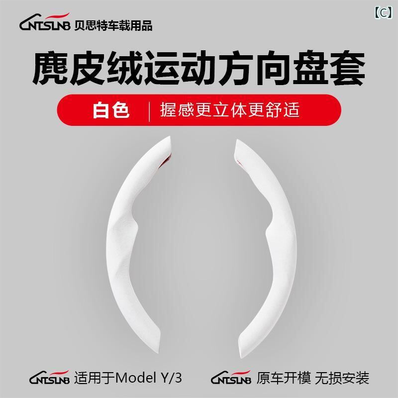 ハンドルカバー テスラ Model3/Y モデル3 モデルY 専用設計 快適 スエード調 インテリア ドレスアップ カスタムパーツ 38cm対応 シンプルデザイン 選べるカラー 赤 黒 白 茶 | lanui
