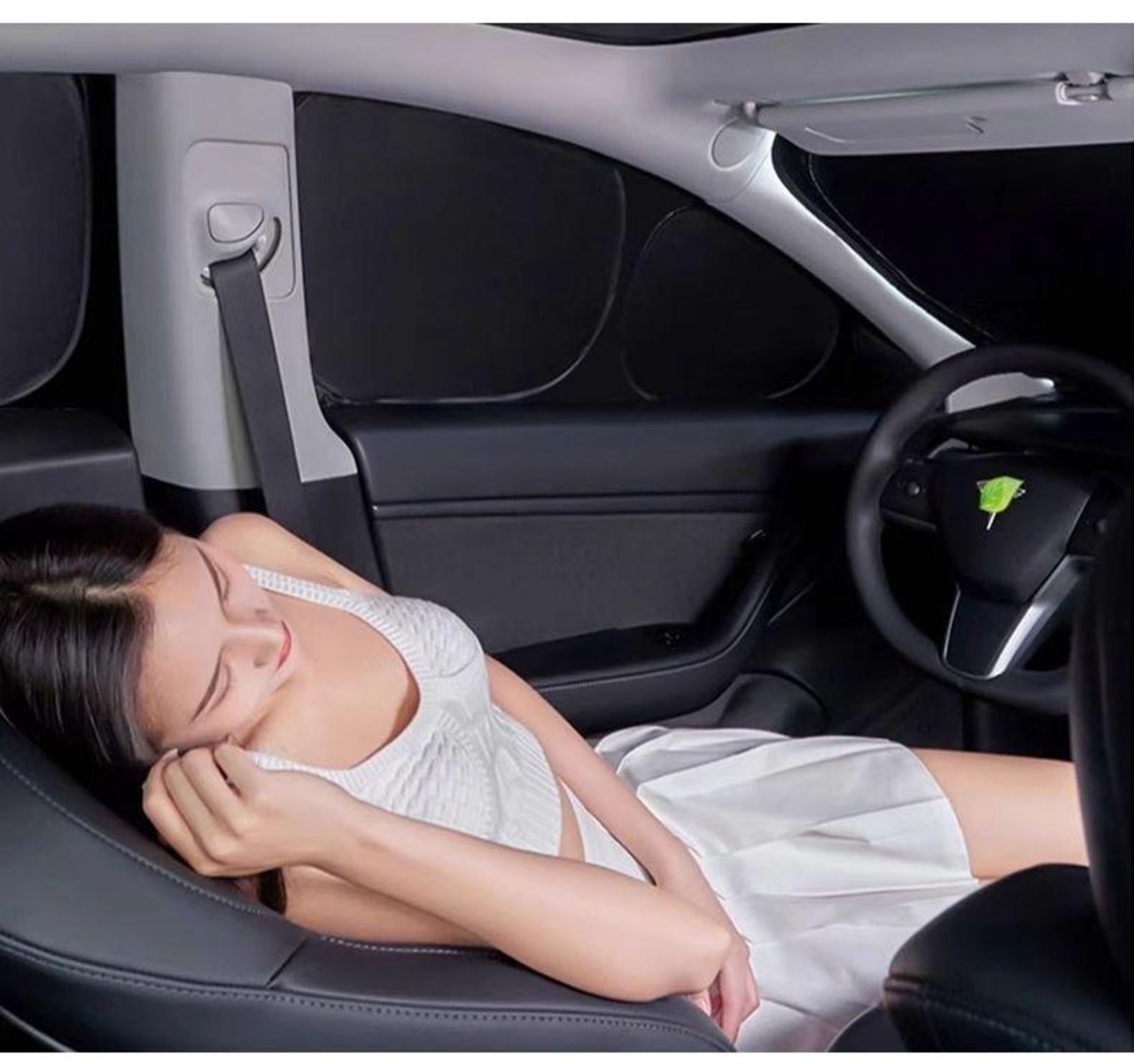 【商品特徴・説明文】: テスラ車専用に設計された、はめ込み式のサンシェードです。高い遮光性と断熱効果で、夏場の強い日差しや紫外線から車内を守り、快適な空間を保ちます。車種専用設計のため、窓にぴったりフィットし、光漏れを最小限に抑えます。取り付けも取り外しも工具不要で簡単に行え、スマートな車内空間を保ちながら快適なドライブをサポートします。シンプルで無駄のないデザインは、どんな車のスタイルにも自然に溶け込み、プライバシー保護にも役立ちます。