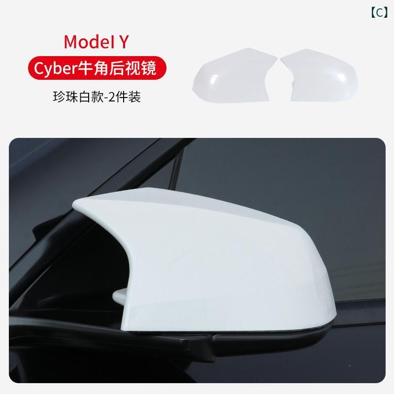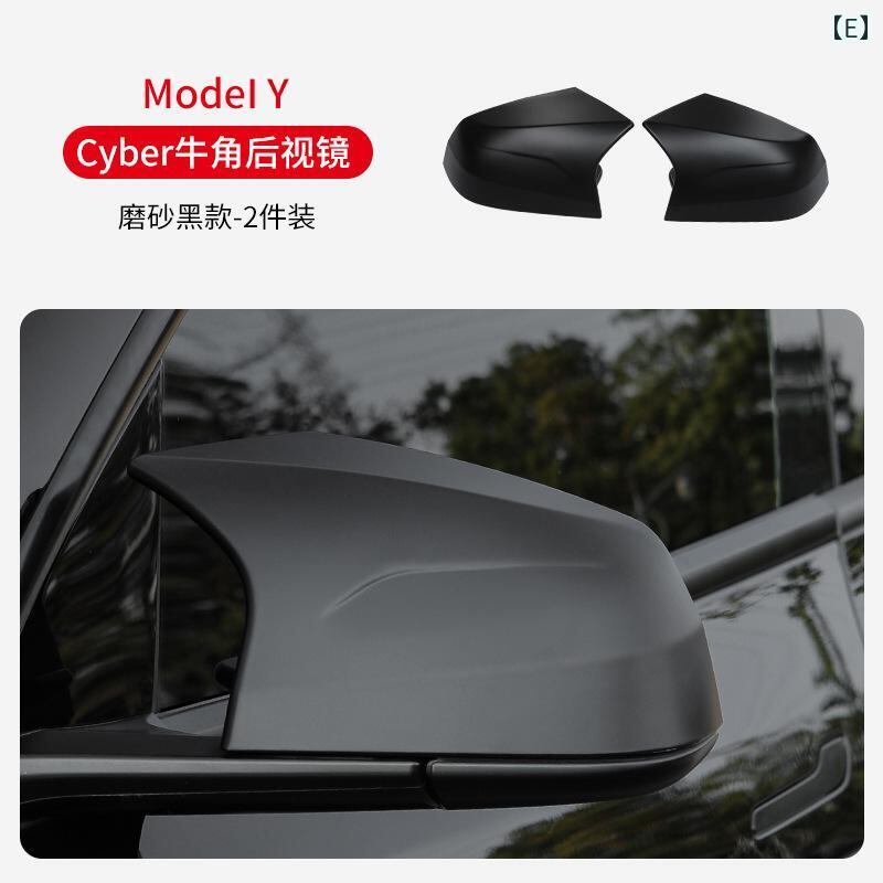 サイドミラーカバー テスラ Model Y 専用 ホーン型 スタイリッシュ サイバーテイスト 個性的 保護 ドレスアップ カスタムパーツ 光沢カーボン調 マットカーボン調 パールホワイト ピアノブラック マットブラック 水転写 塗装 | lanui