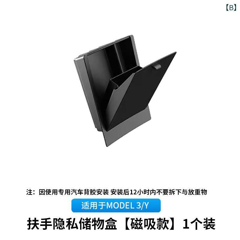車載収納ボックス テスラ 新型 Model 3 Model Y 共通 センターコンソール アームレストボックス マグネット式 吸着 プライバシー保護 隠し収納 小物入れ 整理ケース 車内 内装 アクセサリー 黒 ブラック | lanui