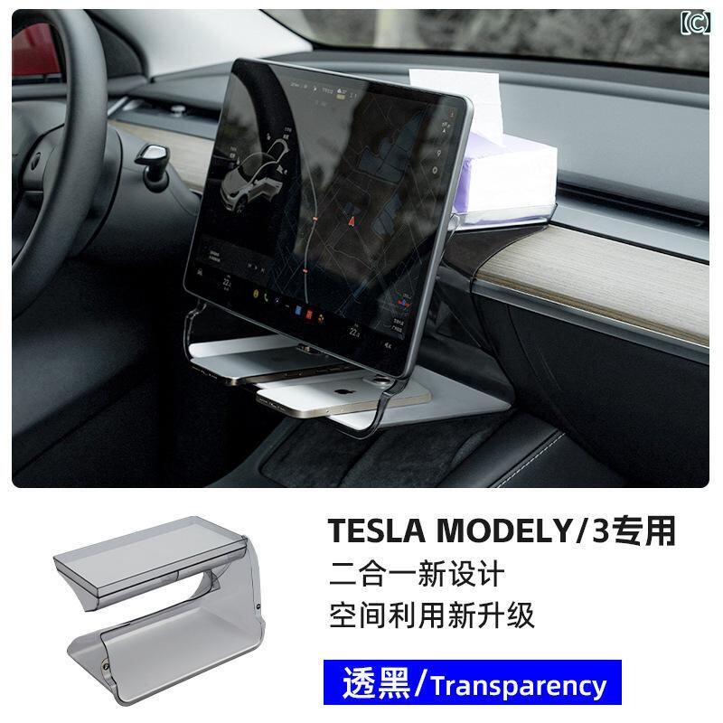 車載収納ボックス テスラ モデル3 モデルY センターコンソール ディスプレイ周り 車種専用設計 小物入れ オーガナイザー 整理整頓 簡単装着 ABS樹脂 ブラック アイボリー スモーククリア | lanui