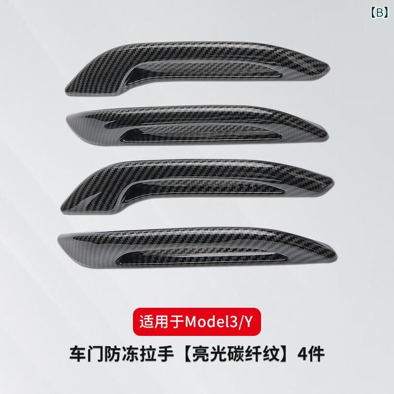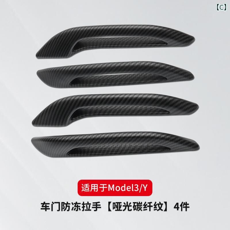 カーアクセサリー テスラ 新型 モデル3 モデルY ドアハンドルカバー 凍結防止 ABS樹脂 カーボンファイバー柄 光沢 マット ピアノブラック レッド パールホワイト カスタムパーツ | lanui