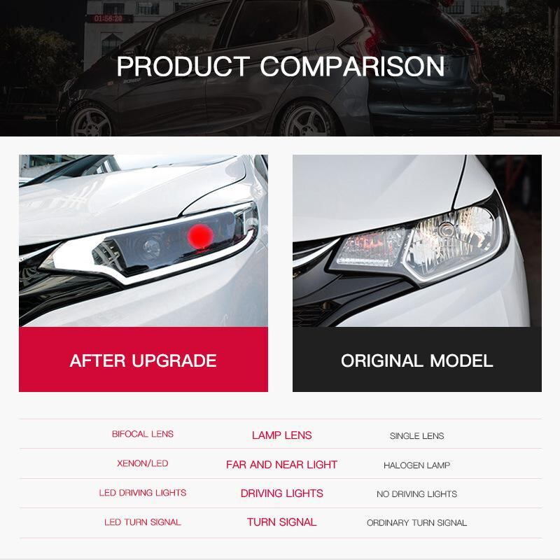 ヘッドライト ホンダ 新型フィット 14-20年式 ユニット LED デイライト プロジェクター バイキセノン HID ディスチャージランプ ABS樹脂 クリアレンズ カスタム 交換用 社外品 | lanui