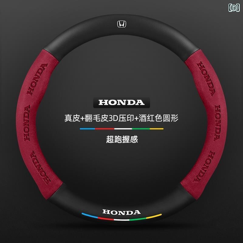 ハンドルカバー ステアリングカバー 本革 レザー 3Dエンボス加工 ホンダ 車種専用 アコード ヴェゼル フィット ブリーズ シティ アヴァンシア カー用品 ブラック モカブラウン ワインレッド スポーティー | lanui
