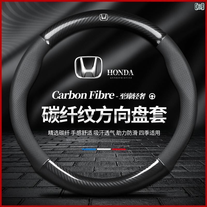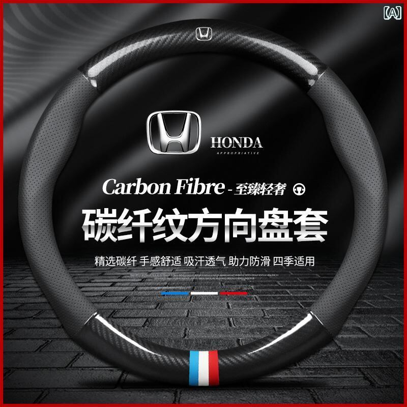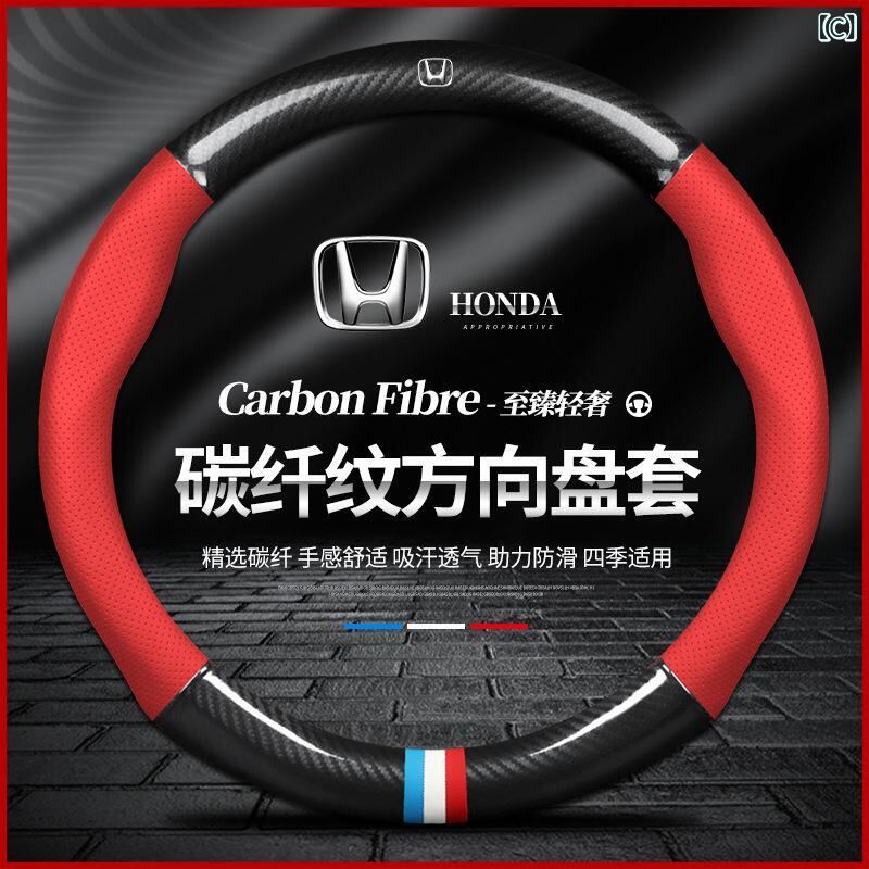 ハンドルカバー ホンダ CR-V ヴェゼル シビック アコード フィット クライダー シティ カーボンファイバー 本革製 滑り止め 円形デザイン オールシーズン対応 38cm スポーティ ブラック レッド | lanui
