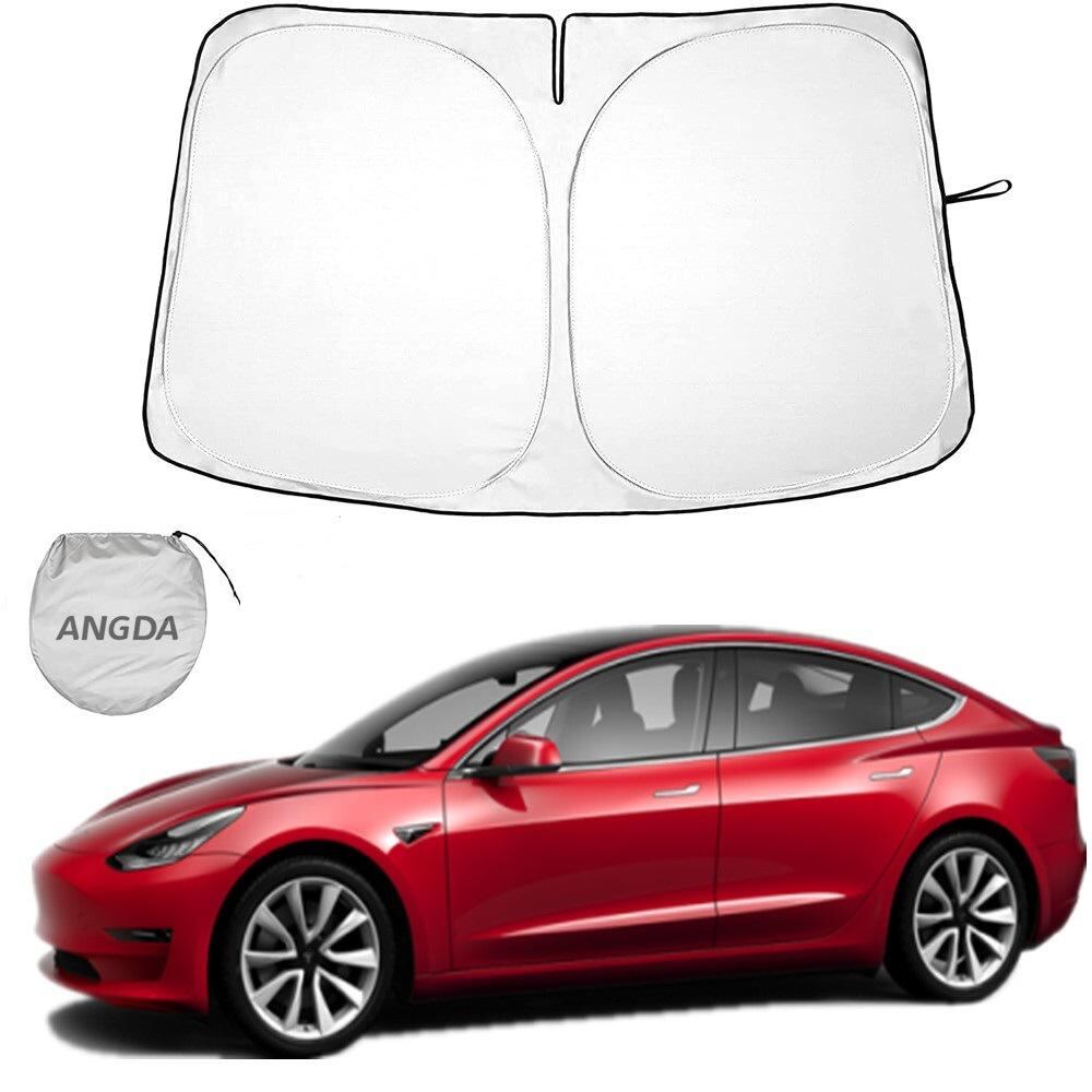 サンシェード テスラ モデル3 モデルY フロントガラス用 シルバーコーティング 遮光 断熱 UVカット 日よけ 折りたたみ式 コンパクト収納 車中泊 駐車 紫外線対策 | lanui