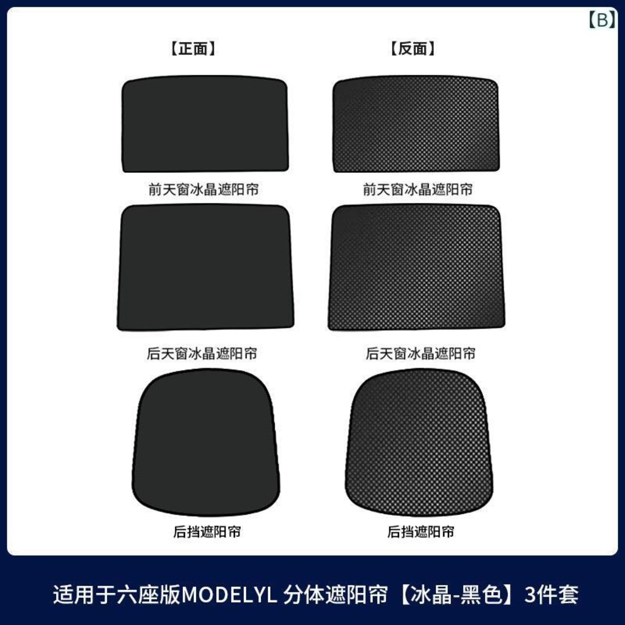 ・6シーターYL用 分割サンシェード アイスクリスタル ブラック 3点セット