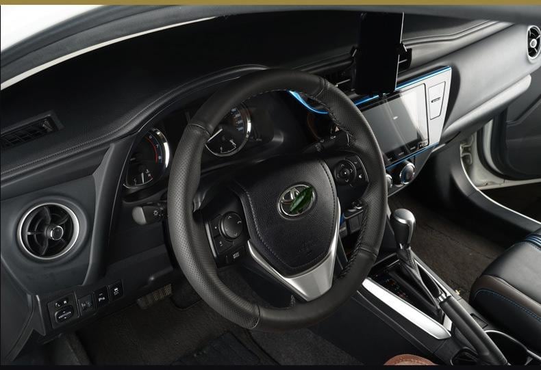 ハンドルカバー トヨタ カローラ RAV4 レビン ハイランダー ワイルドランダー アバロン 本革 手縫い ステアリングカバー リアルレザー DIY装着 専車専用 オールシーズン 黒ステッチ 運動スタイル 保護 カーアクセサリー | lanui