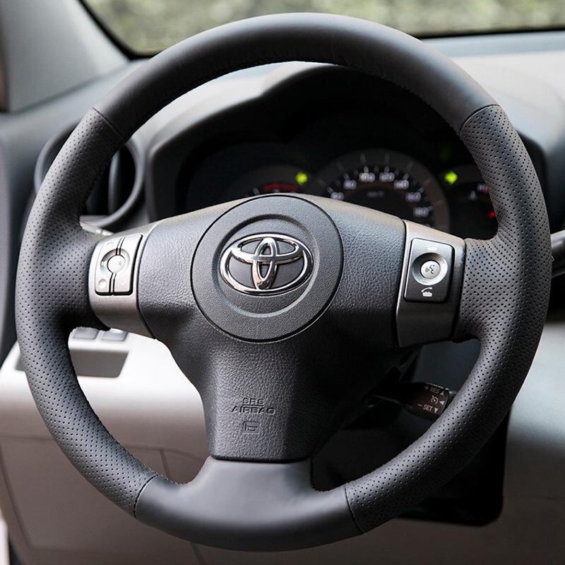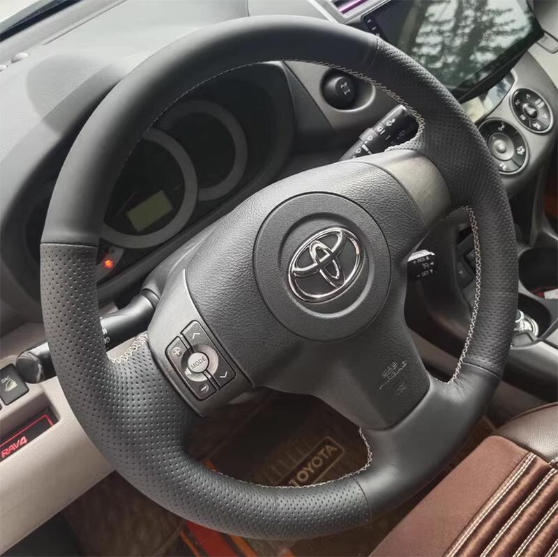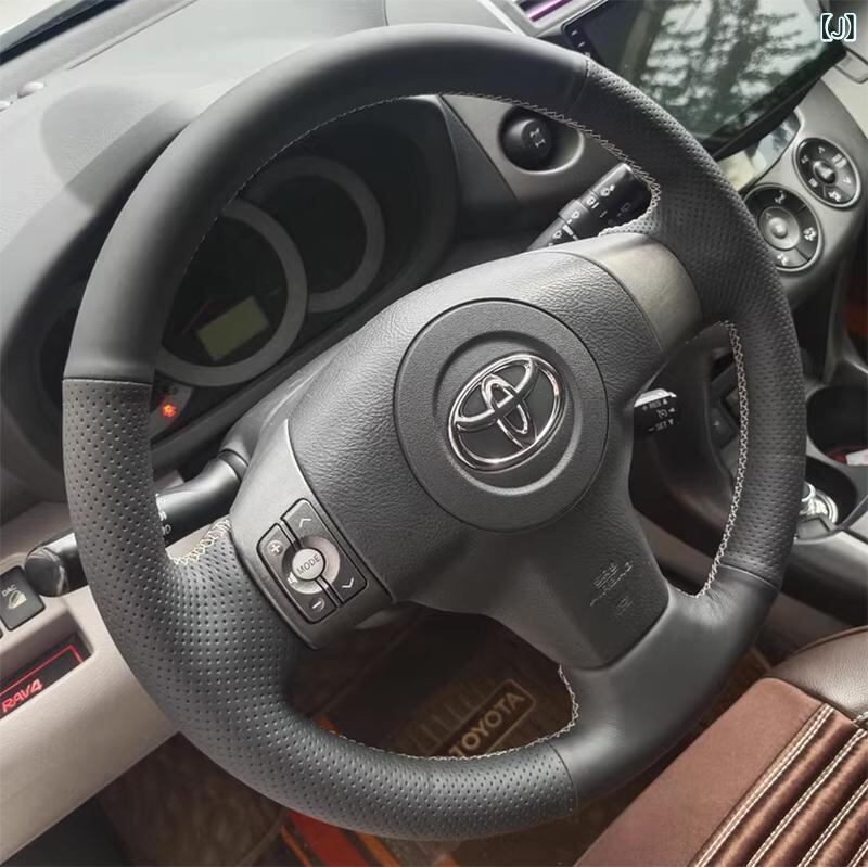 ハンドルカバー トヨタ RAV4 旧ヴィッツ ヤリス 本革 レザー ステアリングカバー 手縫い 専用 フルカバー 滑り止め 快適 グリップ 38cm対応 車内アクセサリー 保護 カスタムパーツ | lanui