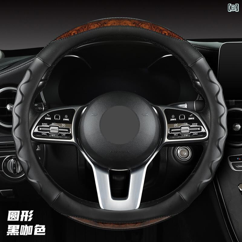 ハンドルカバー ステアリングカバー 車用 立体 マッサージ 波型 オールシーズン 汎用 トヨタ RAV4 カムリ カローラ レビン 合皮 フェイクレザー ブラック グレー ベージュ ブラウン オレンジ ワインレッド ビジネス | lanui