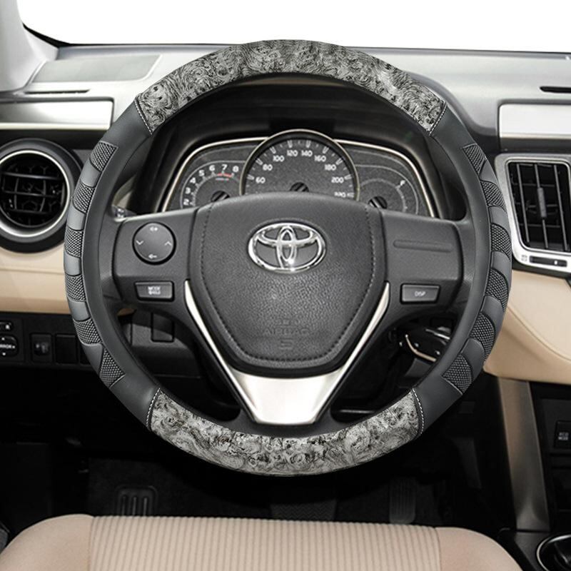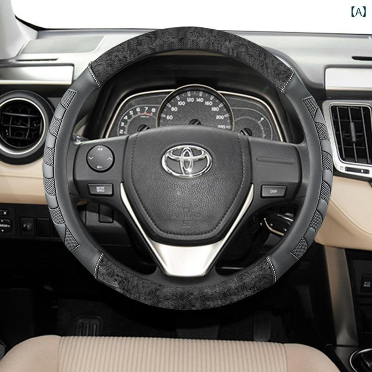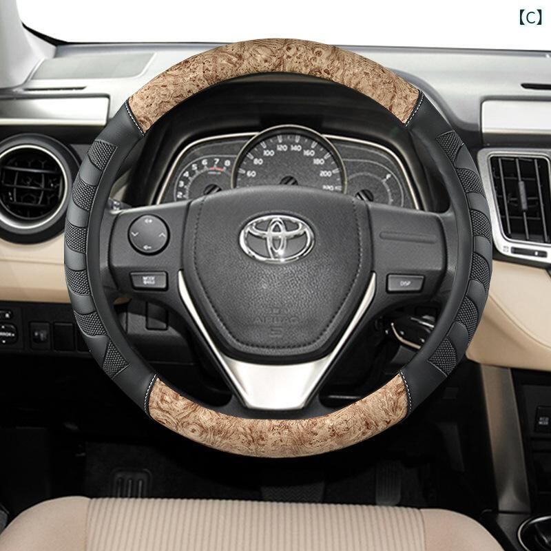 ハンドルカバー ステアリングカバー トヨタ車用 38cm 合成繊維 桃木柄 ブラック グレー ベージュ ブラウン フロンランダー カローラ RAV4 カローラクロス ハイランダー レビン カムリ | lanui