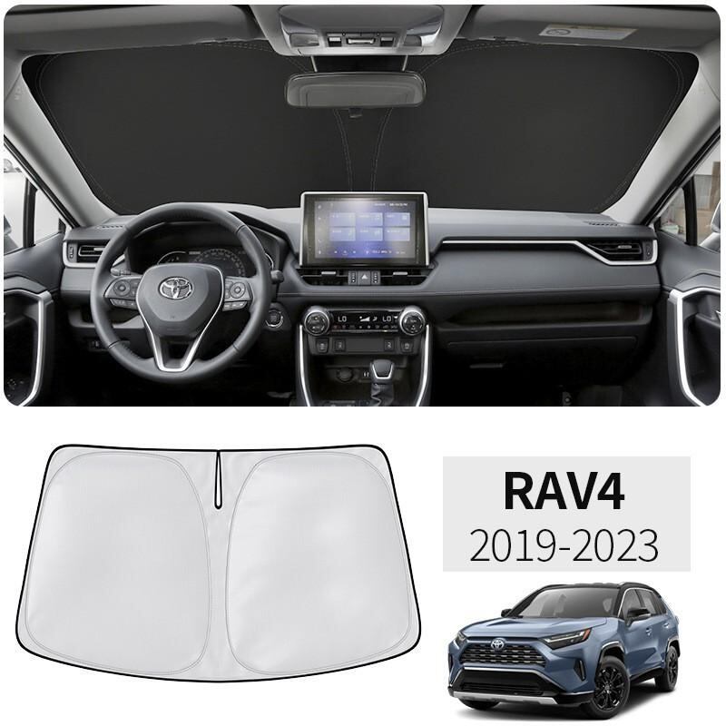 カーサンシェード トヨタ RAV4 専用設計 フロントガラス用 フレーム式 日よけ UVカット 断熱 遮熱 プライバシー保護 目隠し オックスフォード生地 マグネット式 ブラック シルバー | lanui