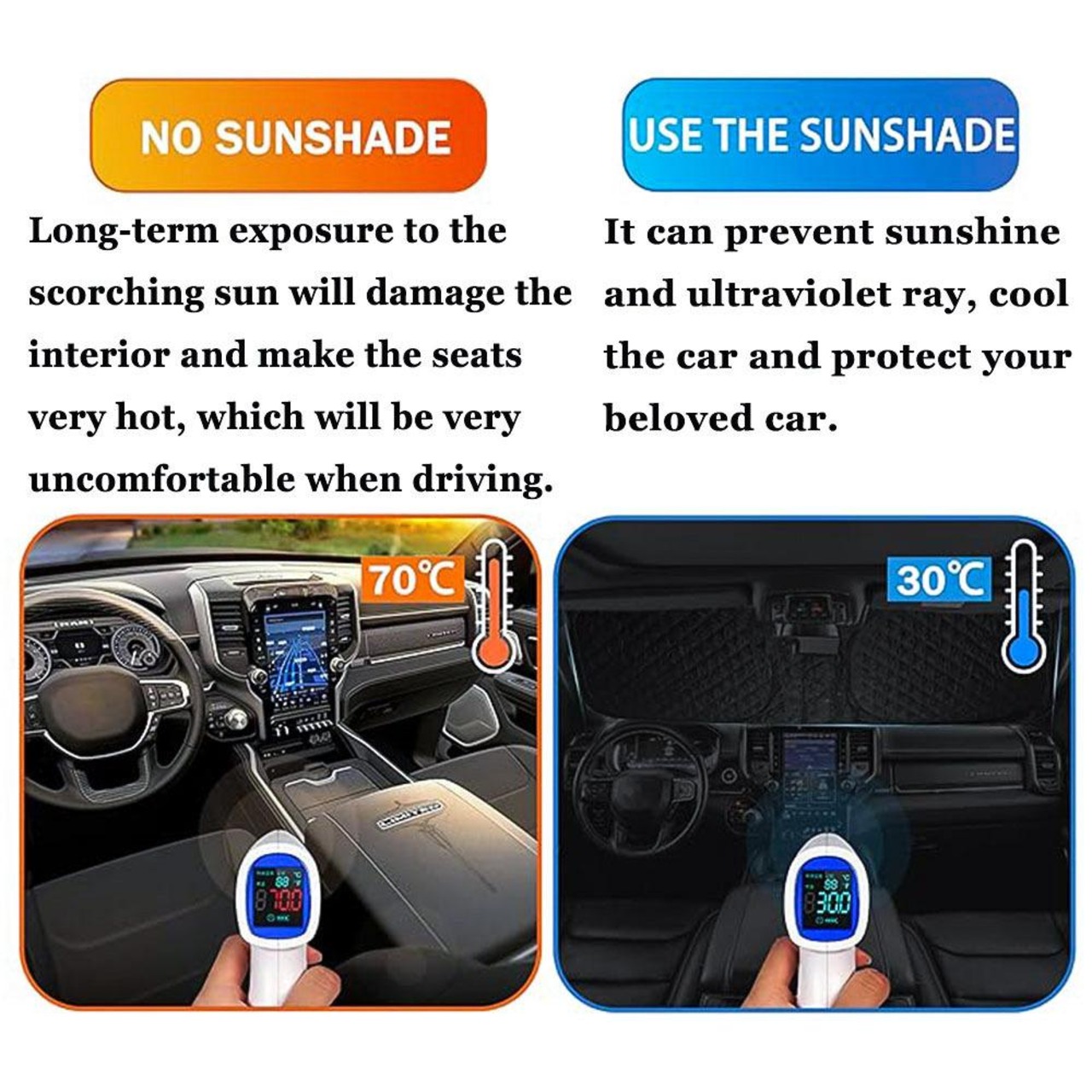 強力な日差しをカットし、駐車中の車内温度上昇を抑えます。
