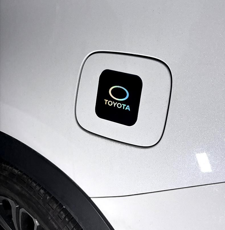 カーステッカー トヨタ RAV4 C-HR レイツ 専用 給油口 ボディ ドレスアップ アクセサリー 真ガラス製 スクエア 高反射 蓄光 夜間発光 カラフル グラデーション 8x8cm | lanui