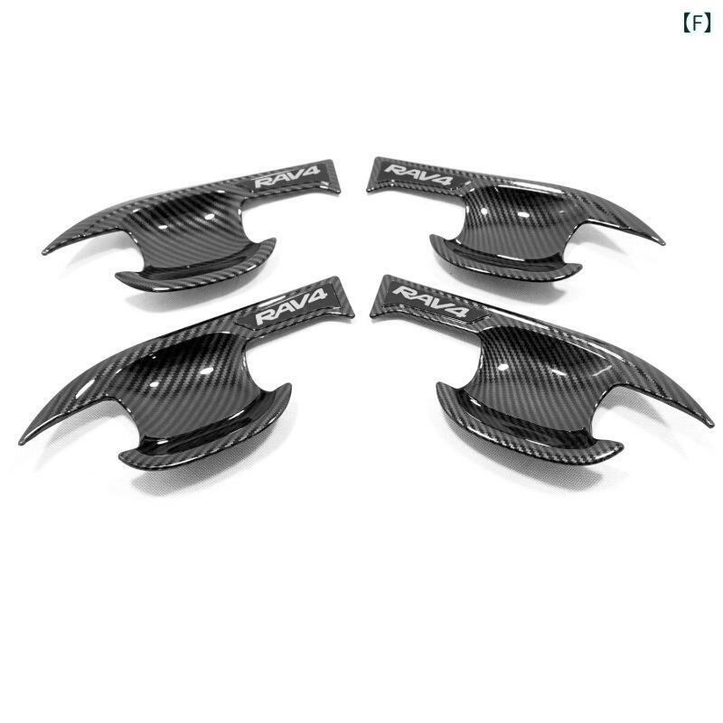 車用品 トヨタ RAV4 2020年式 ドアハンドルカバー アウターハンドルカバー ドアノブプロテクター ドアカップガーニッシュ 外装 ドレスアップ カスタム 保護 傷防止 ABS樹脂製 メッキ調 光沢ブラック カーボン柄 アクセサリー | lanui