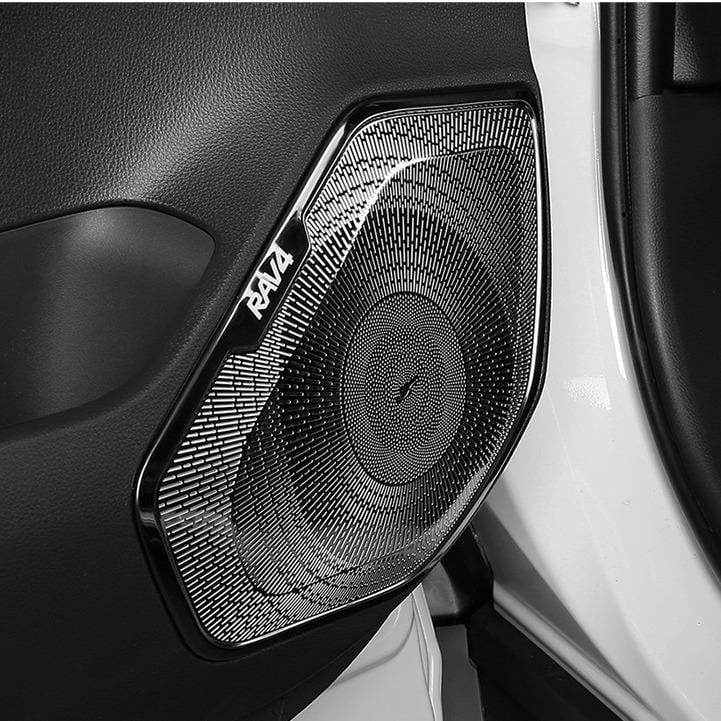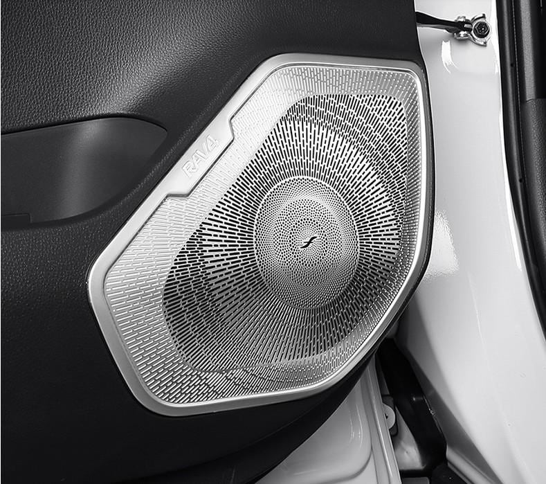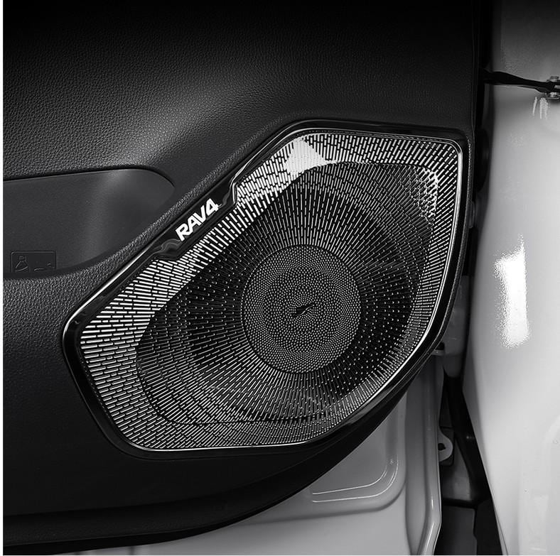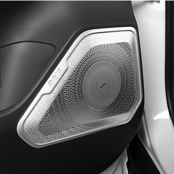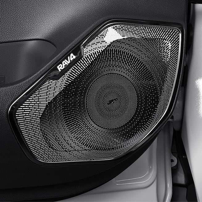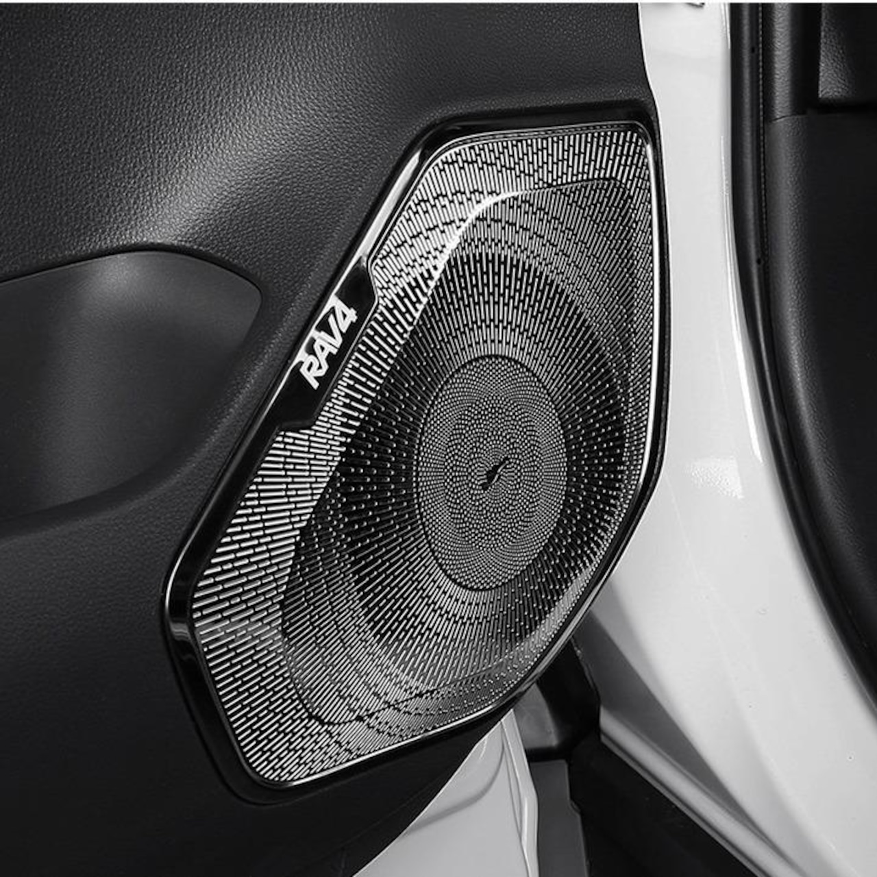車内アクセサリー トヨタ RAV4 ワイルドランダー 2020 2021年式 カスタム ドレスアップ 内装 インテリア ドア スピーカーフレームカバー ガーニッシュ ステンレス製 ブラック シルバー(x2) | lanui