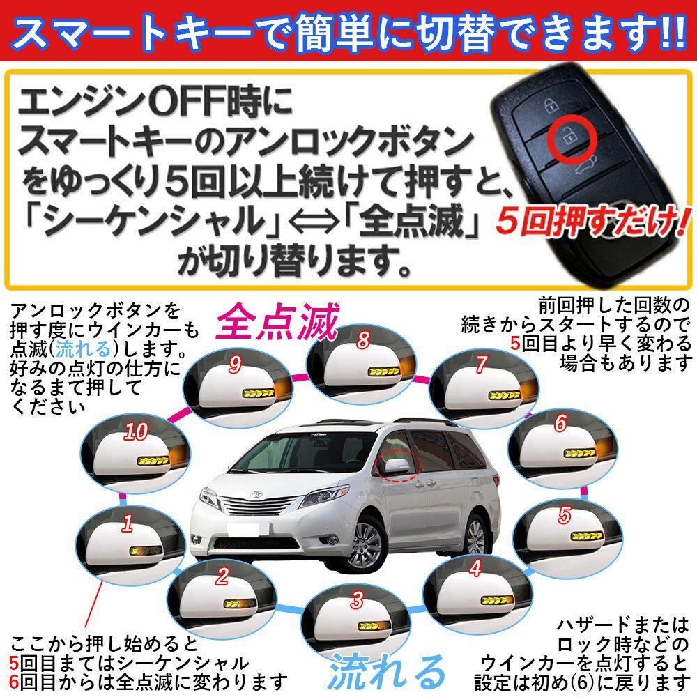 LEDサイドマーカー ウインカーランプ トヨタ シエンタ ハイランダー RAV4 アルファード対応 シーケンシャル点灯 通常点滅 モード切替 アンバー ドアミラー ABS製 カスタムパーツ ドレスアップ 高輝度 長寿命 専用設計 | lanui