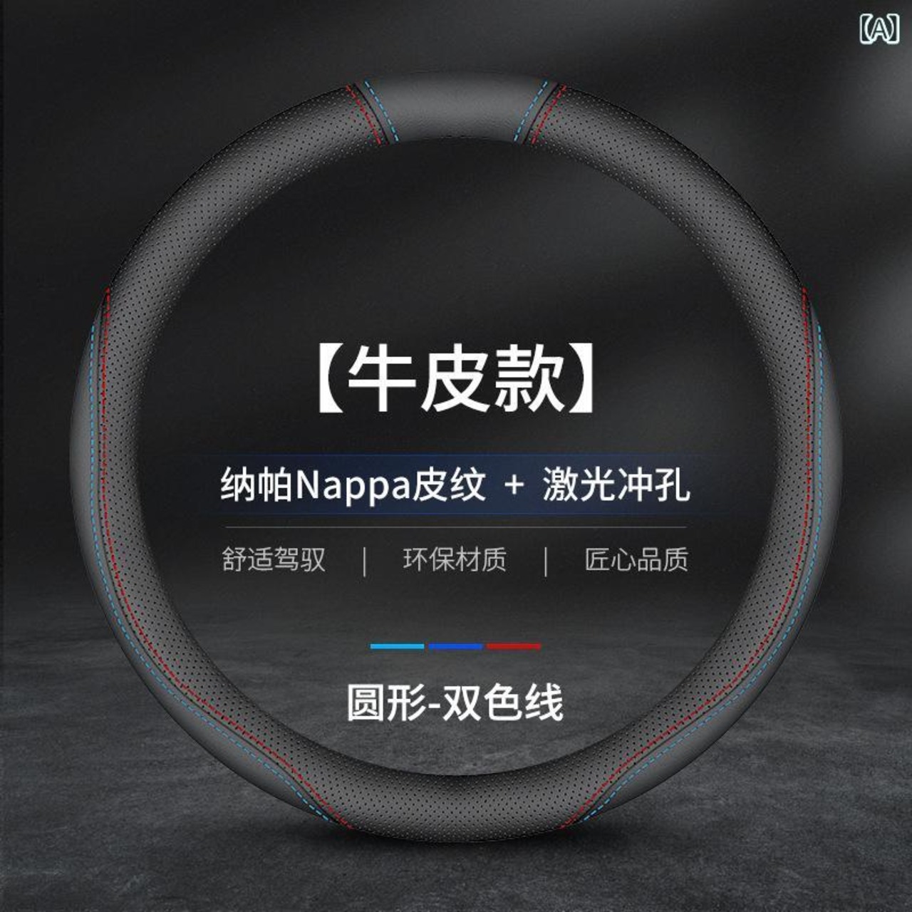 高級感あふれる牛革と、なめらかな手触りのスエードを使用したステアリングホイールカバーです。