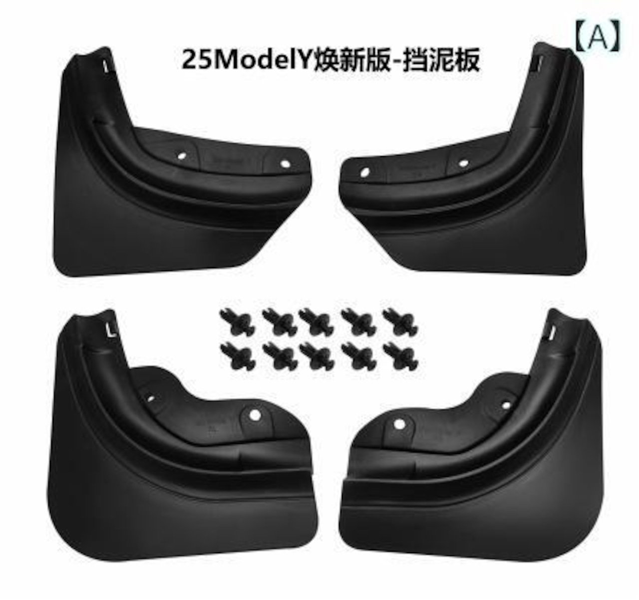 マッドガード テスラ モデルY 新型 2025年式 リフレッシュモデル 専用 前後4点セット 穴あけ不要 無加工 ABS樹脂 PP TPE 車体保護 飛び石防止 泥除け 汚れ対策 マットブラック | lanui