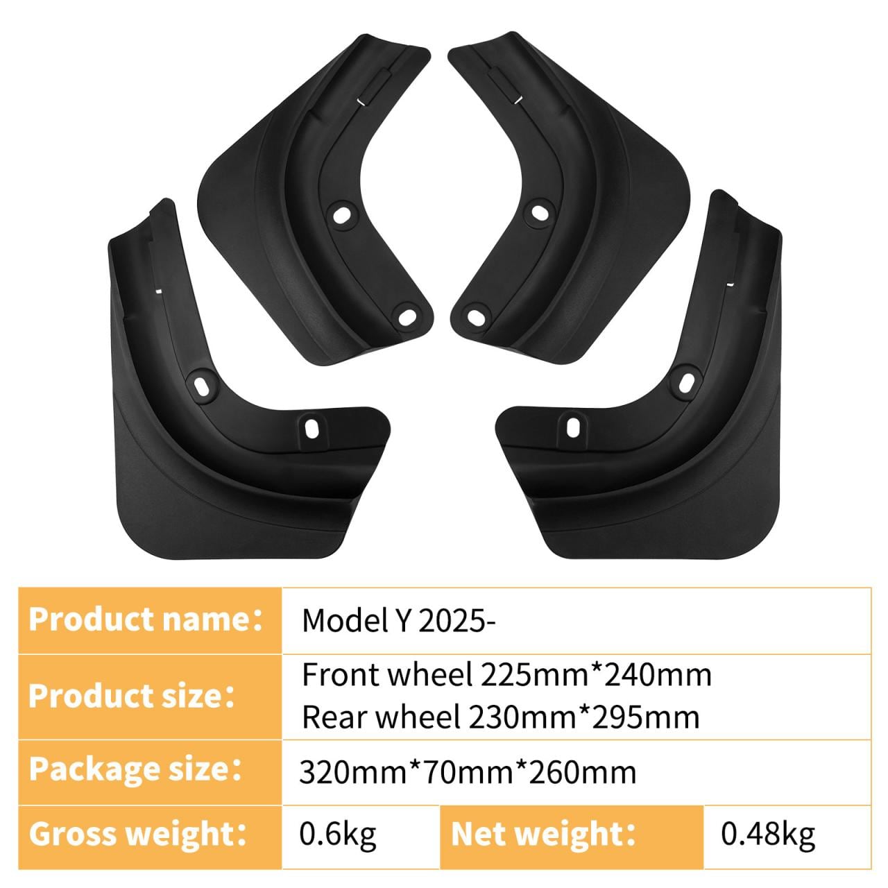 おすすめポイント: ・テスラ MODEL Y専用設計で、美しいフィット感 ・穴あけ不要で、誰でも簡単に取り付け可能 ・泥や小石の跳ね上げから車体をしっかり保護 ・耐久性に優れたPP軟プラスチック素材で長持ち