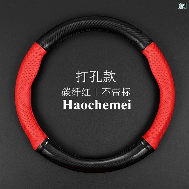 ハンドルカバー ステアリングカバー ホンダ CR-V e:HEV ハイブリッド車 専用 カーボンファイバー 炭素繊維 本革 レザー スポーツデザイン 円型 ブラック レッド 高級感 快適グリップ 車内装 ドレスアップ カスタム パーツ オールシーズン | lanui