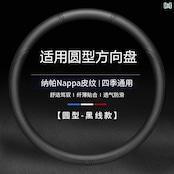 【商品特徴・説明文】様々な車種の38cmハンドルに対応する、本革を使用したシンプルでスタイリッシュなハンドルカバーです。上質な本革が手になじみ、快適な握り心地でドライブをサポートします。オールシーズン対応で、車の内装をおしゃれに彩ります。直径38cmのハンドルにぴったりフィットする専用設計で、取り付けも簡単です。ロゴの有無やカラーラインを選べるので、お好みに合わせてカスタマイズをお楽しみいただけます。