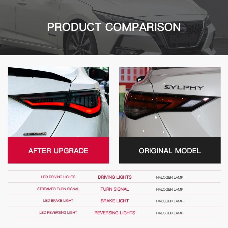 【商品特徴・説明文】新型日産シルフィ専用のLEDテールランプです。鮮やかな赤色の発光が、夜間の後続車からの視認性を高め、安全運転をサポートします。愛車のリアビューをスタイリッシュに演出し、ドレスアップ効果も期待できます。