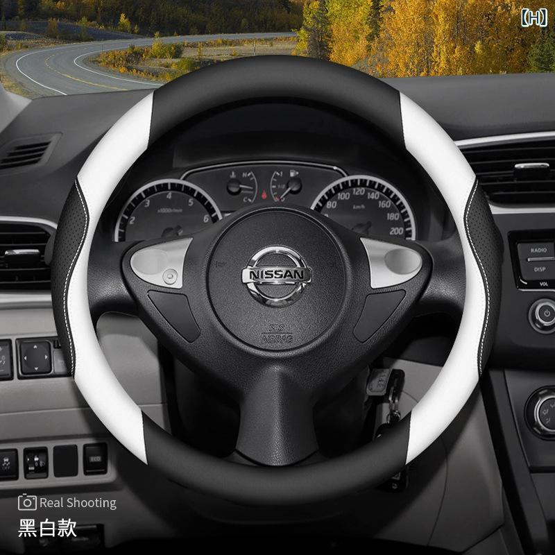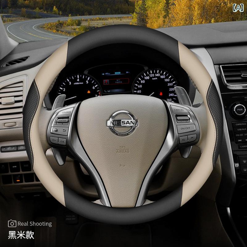 ハンドルカバー ステアリングカバー 日産 シルフィ ティアナ ティーダ サニー エクストレイル デュアリス 対応 専用設計 円形 D型 ブラック ベージュ ブラウン ワインレッド グレー ホワイト ツートンカラー 車用品 カー用品 | lanui