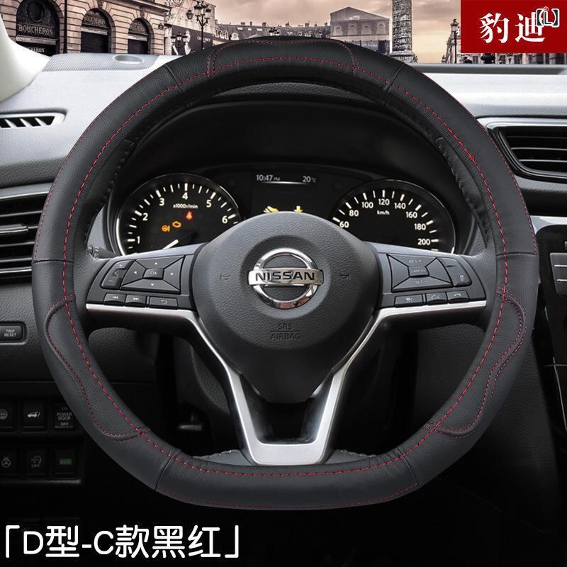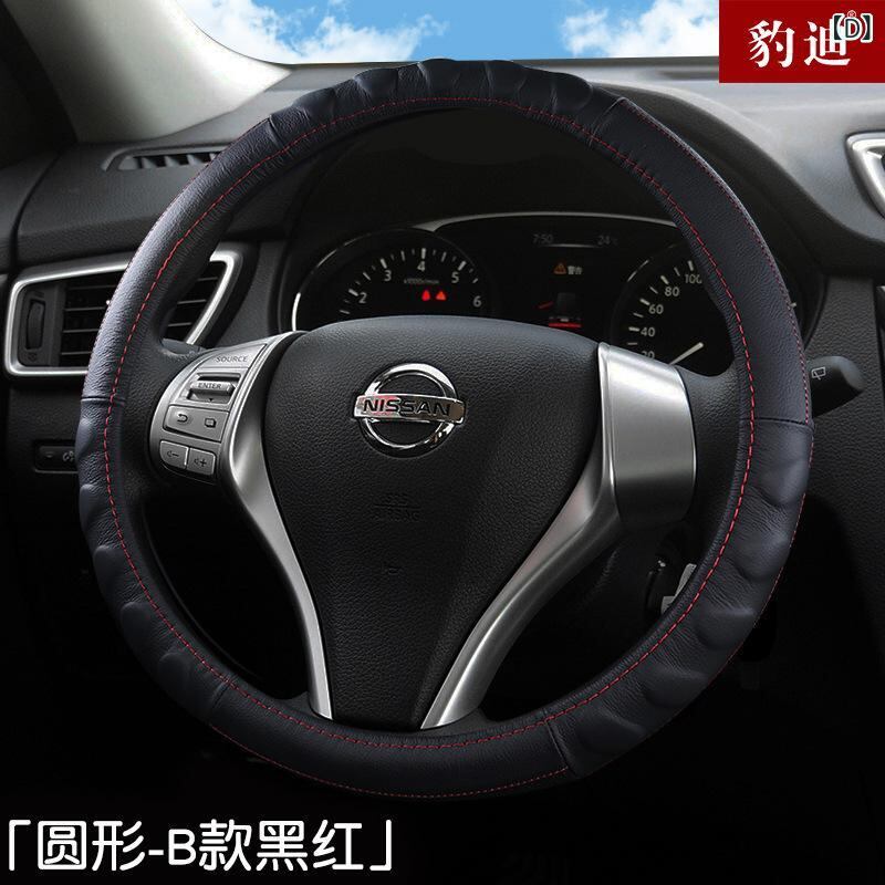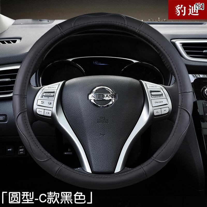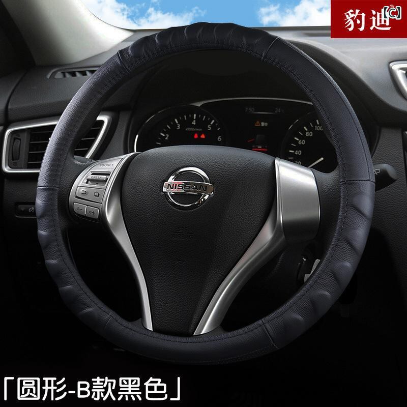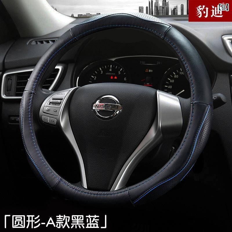 ハンドルカバー ステアリングカバー 日産 ニッサン シルフィ エクストレイル キャシュカイ キックス テラ ティアナ ティーダ ブルーバード サニー 本革 牛革 車用 高級感 滑り止め 快適 グリップ D型 円形 | lanui