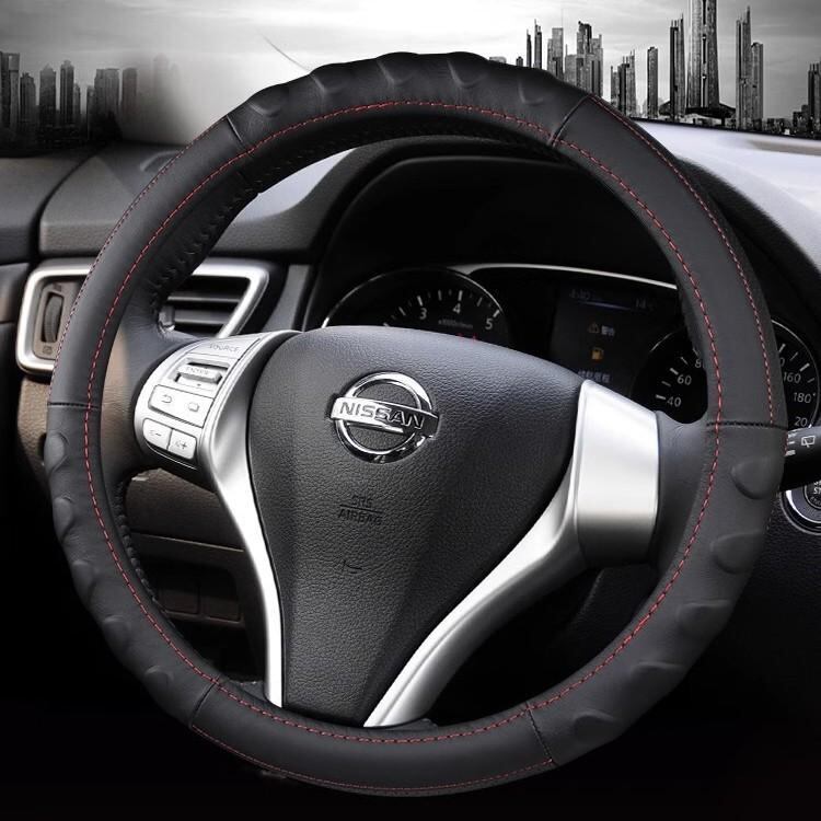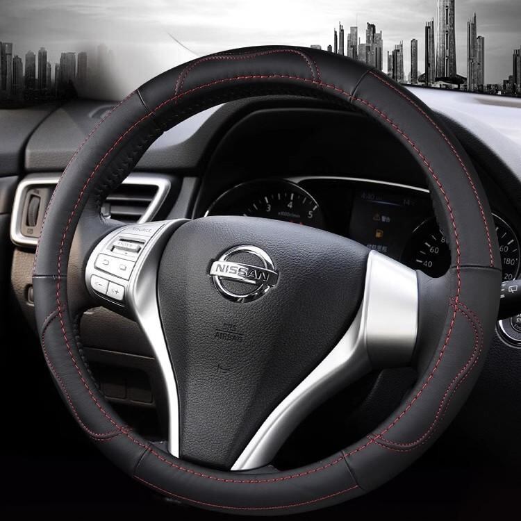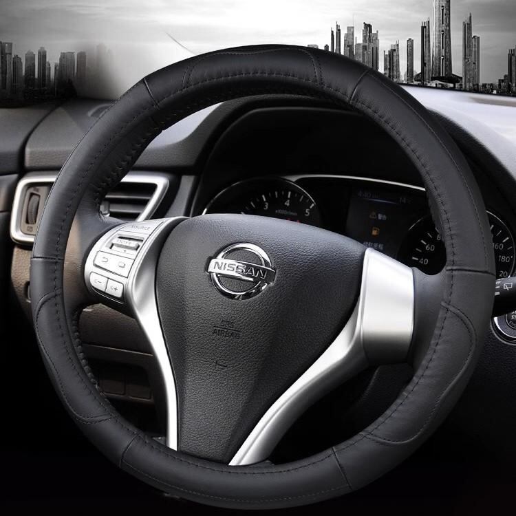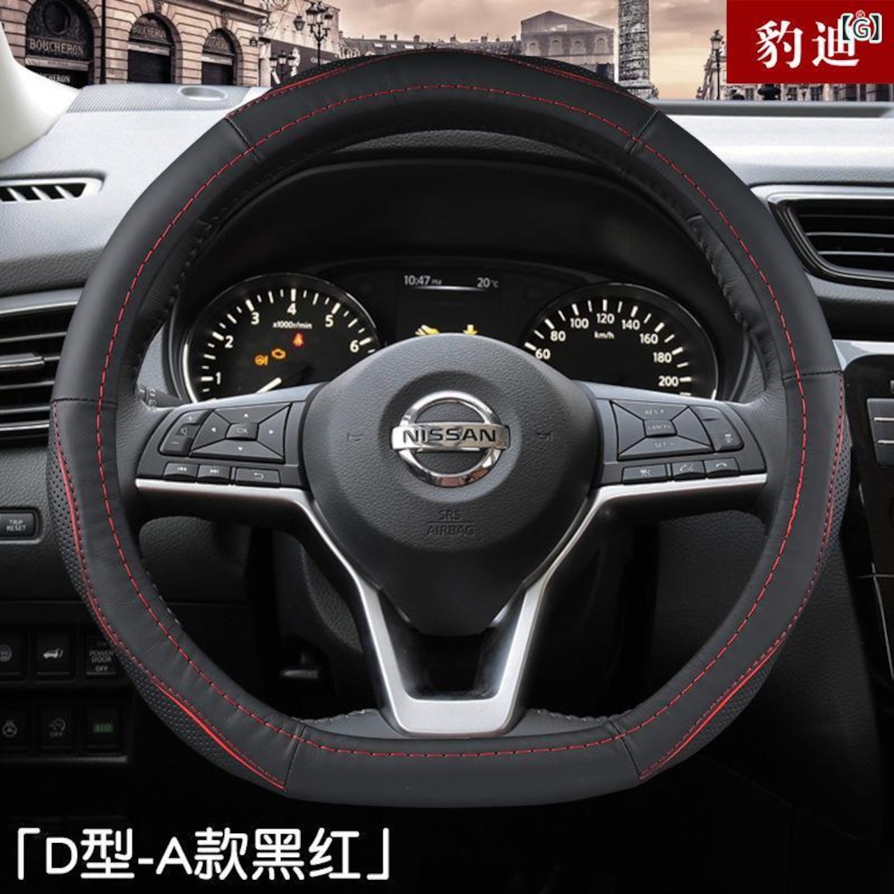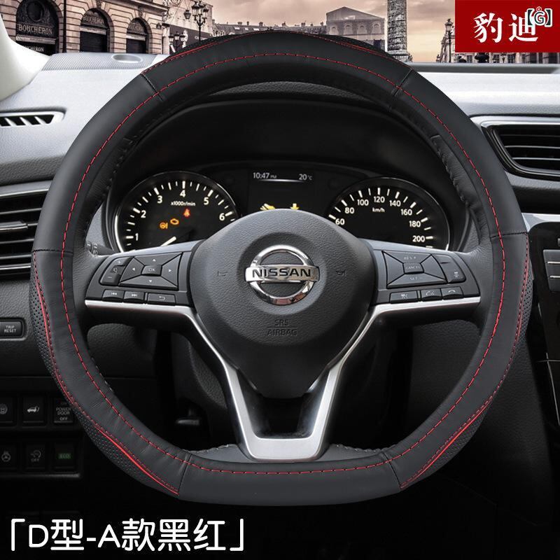 ハンドルカバー ステアリングカバー 日産 ニッサン シルフィ エクストレイル キャシュカイ キックス テラ ティアナ ティーダ ブルーバード サニー 本革 牛革 車用 高級感 滑り止め 快適 グリップ D型 円形 | lanui