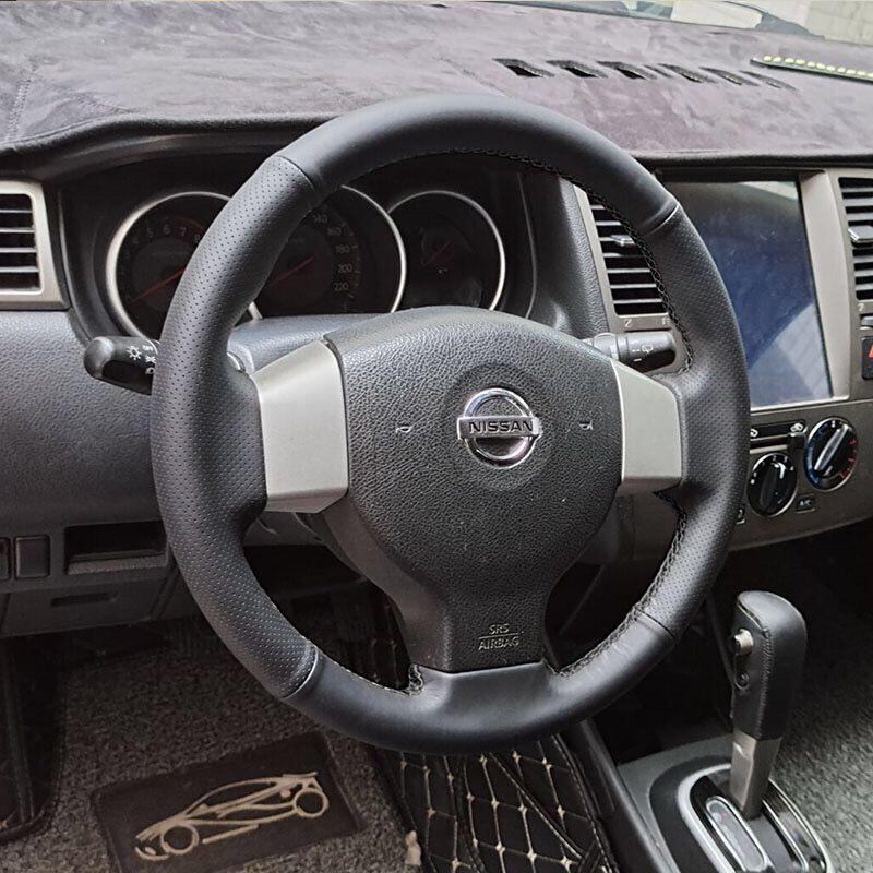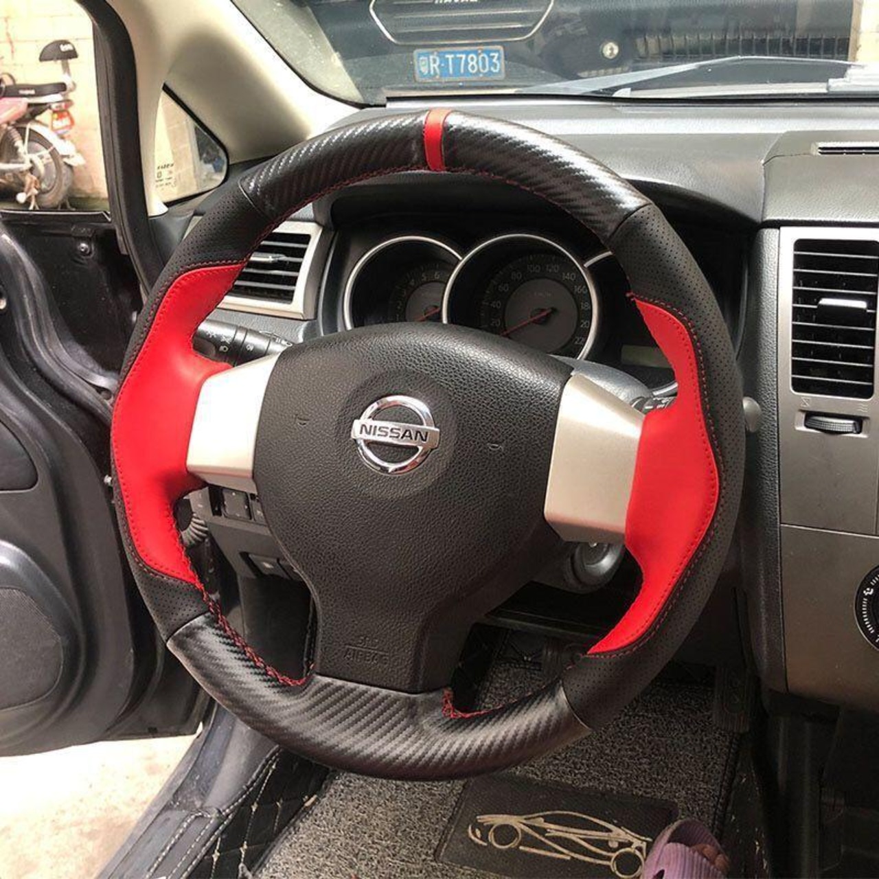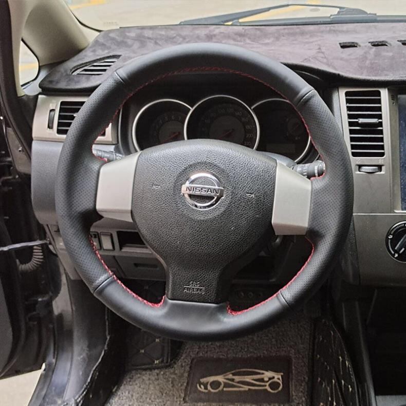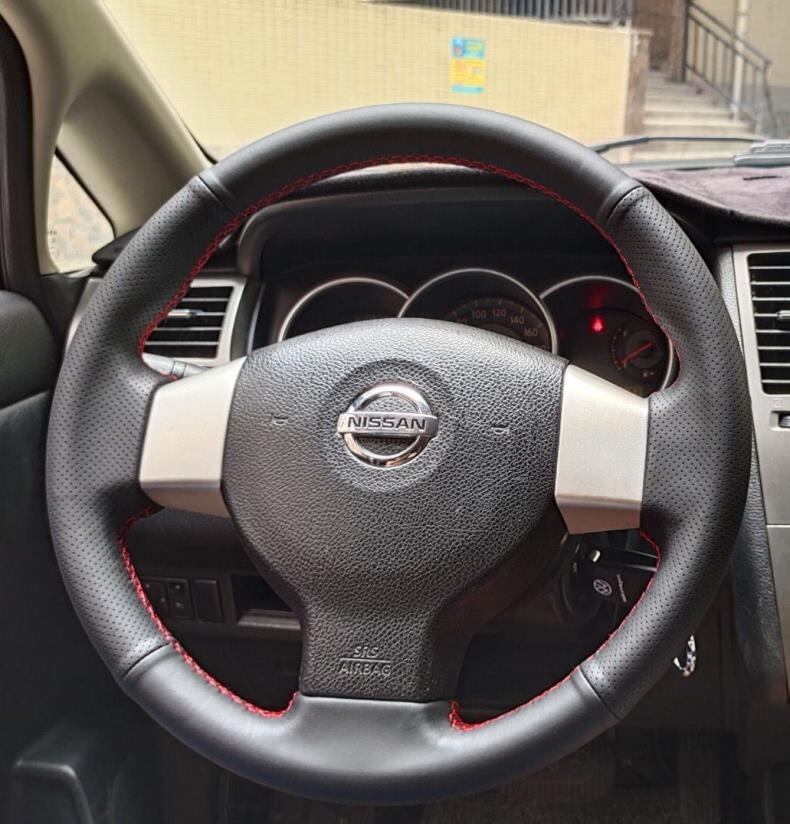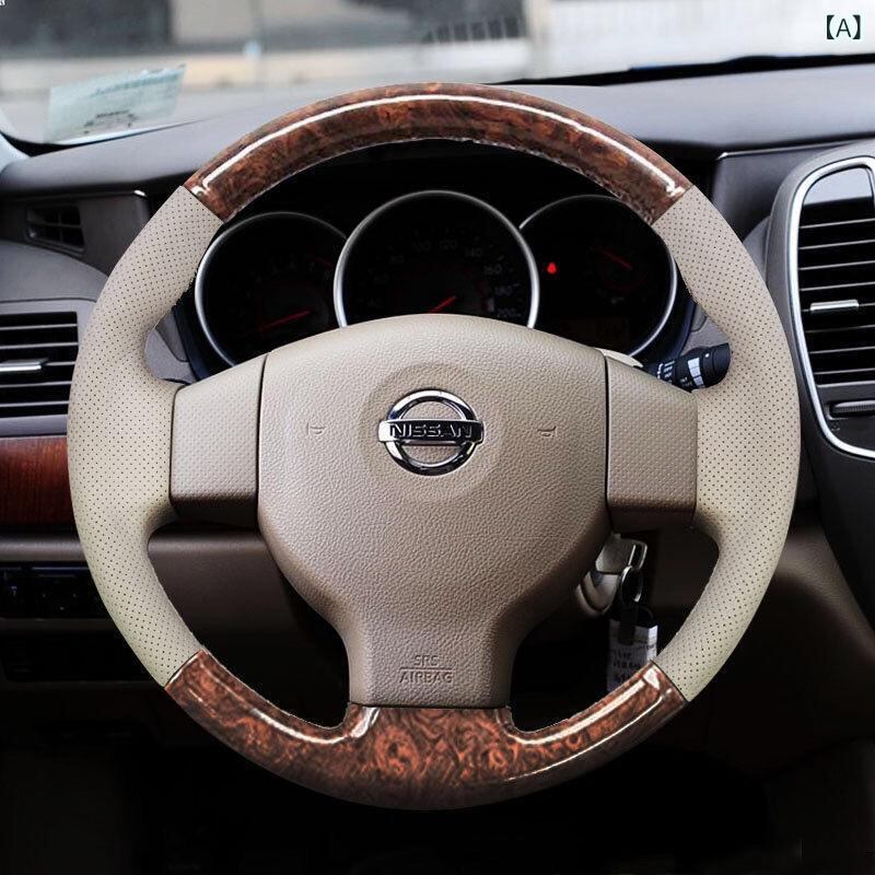 ステアリングカバー 日産 ニッサン シルフィ ティーダ リヴィナ ラティオ 専用設計 手縫い ハンドルカバー 旧型対応 38cm対応 車内 内装 ドレスアップ カスタムパーツ ベージュ ブラック 木目調 レッドステッチ | lanui