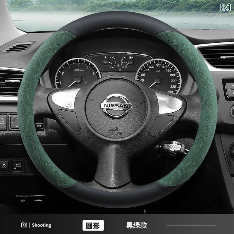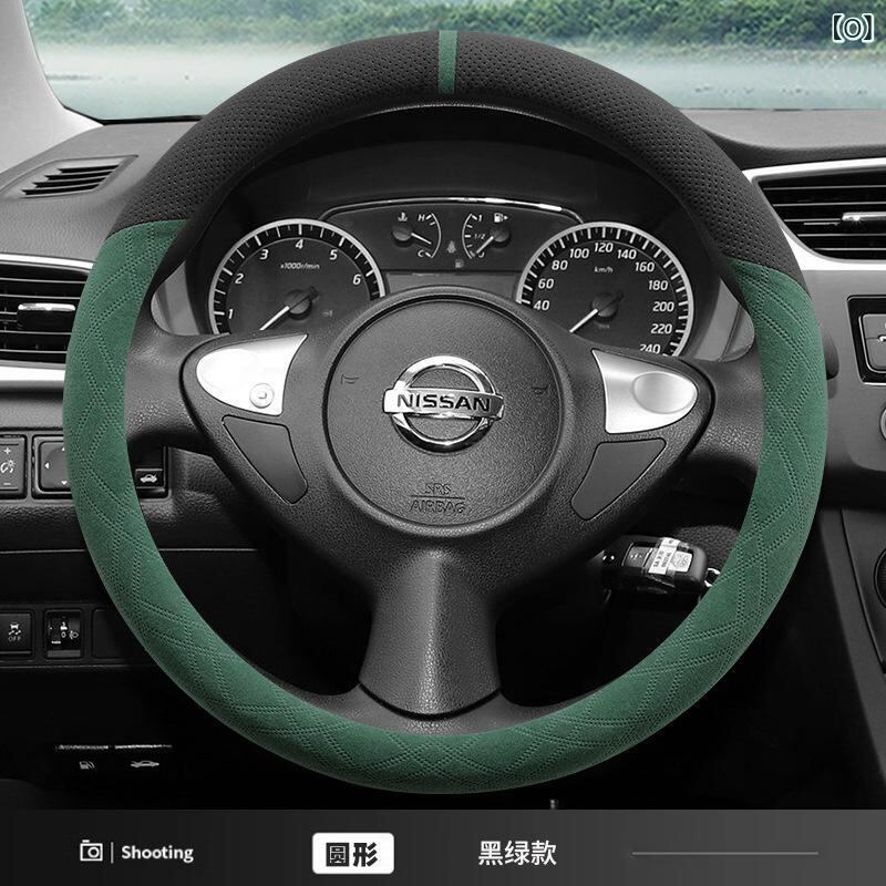 スポーツテイストがおしゃれな、スエード調のハンドルカバーです。