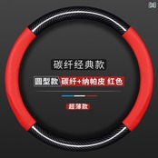 商品特徴・説明文: このハンドルカバーは、本革を使用したスポーティなデザインが特徴です。円形とD形、それぞれカーボン調のスタイリッシュなデザインをご用意しており、車内をグッと引き締めます。オールシーズン対応で、直径38cmのハンドルにぴったりフィットする専用設計です。握り心地の良い素材で、ドライブを快適にサポートします。