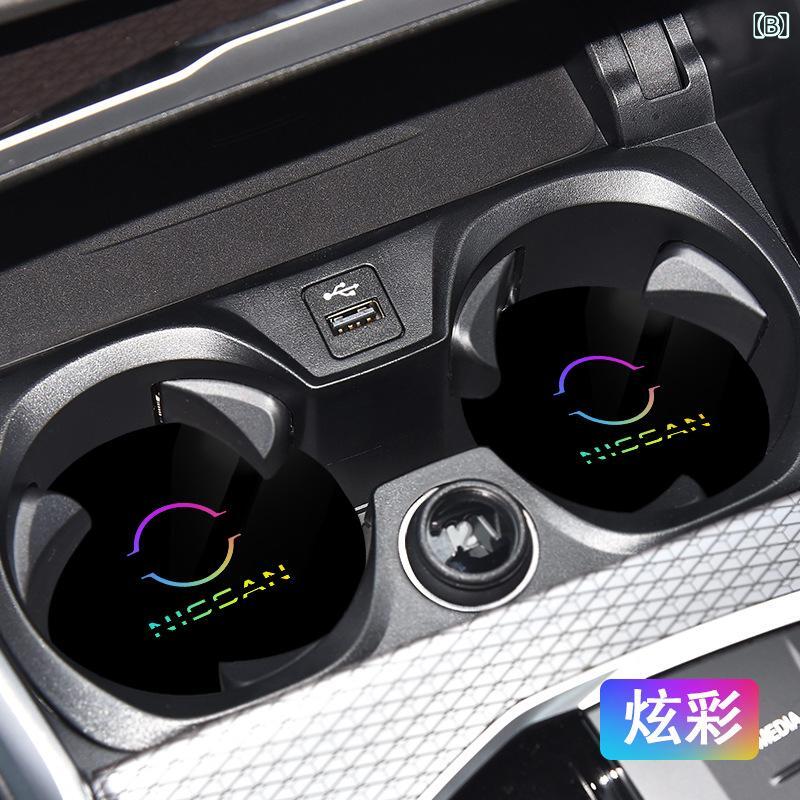 ドリンクホルダーマット 日産 14代目 シルフィ キックス ティーダ サニー 専用 車内 センターコンソール 円形 アクリル製 カラフル 夜光 シート 傷防止 滑り止め 汚れ防止 ドレスアップ カスタム 内装アクセサリー | lanui