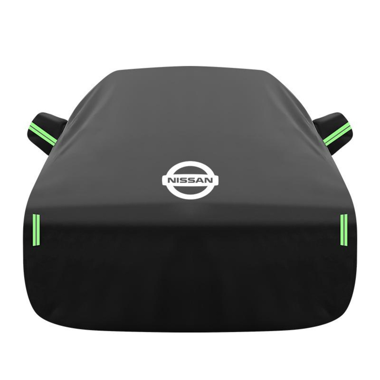 車カバー 日産 軒逸 防水 撥水 防雪 凍結防止 霜対策 UVカット 紫外線対策 遮熱 防塵 防傷 高耐久オックスフォード生地 全面保護 オールシーズン クラシックブラック ムーンライトシルバー | lanui