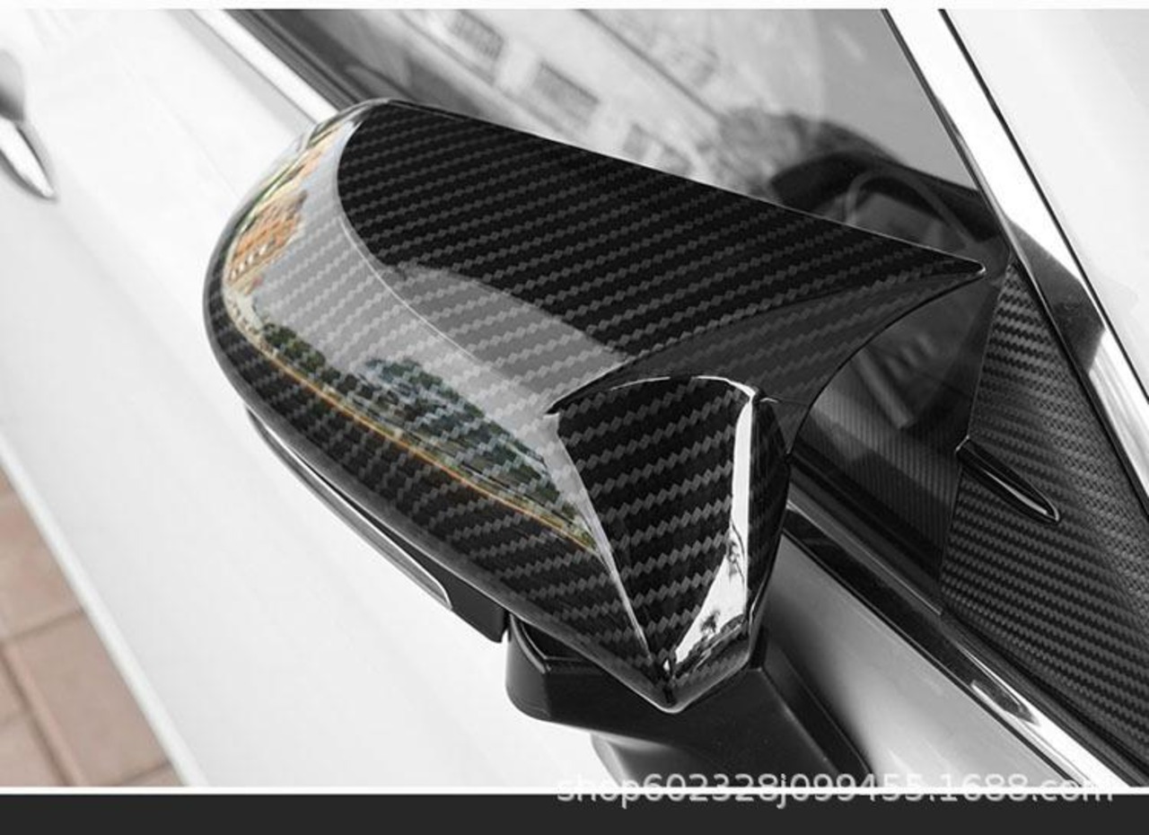 ドアミラーカバー トヨタ カムリ アバロン C-HR プリウス ホーン型 カスタム ドレスアップ カーボン調 光沢ブラック 交換用外装パーツ | lanui