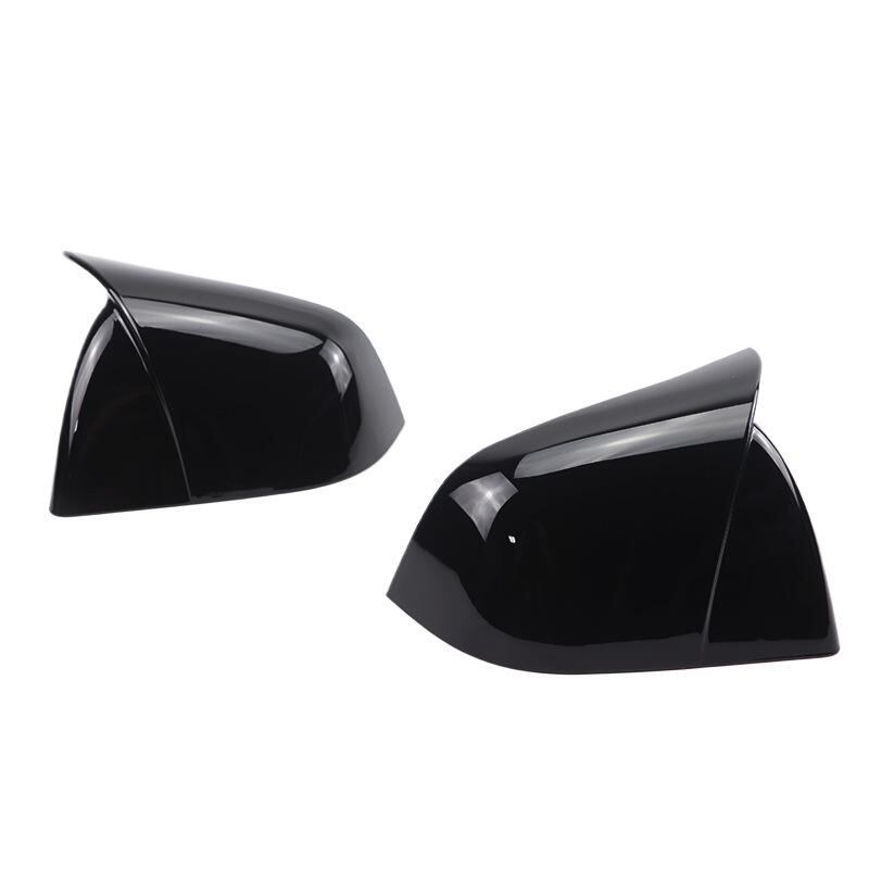 ミラーカバー テスラ モデルY 専用 ABS樹脂製 カスタムパーツ ホーンタイプ カーボン調 光沢ブラック 貼り付け 簡単装着 スポーティ 外装 ドレスアップ エアロ 保護 アクセサリー | lanui