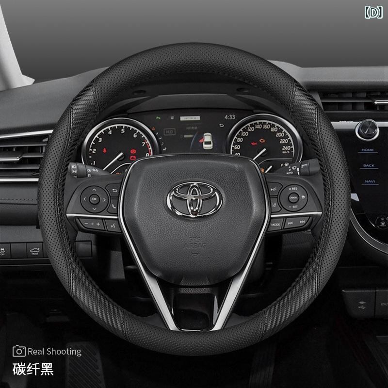 ハンドルカバー トヨタ用 カローラ カムリ レーリン ヴィオス カローラクロス RAV4 ヤリスクロス オールシーズン 車内アクセサリー ブラック ブラウン カーボン調 ステッチ 滑り止め 汚れ防止 保護 ドレスアップ