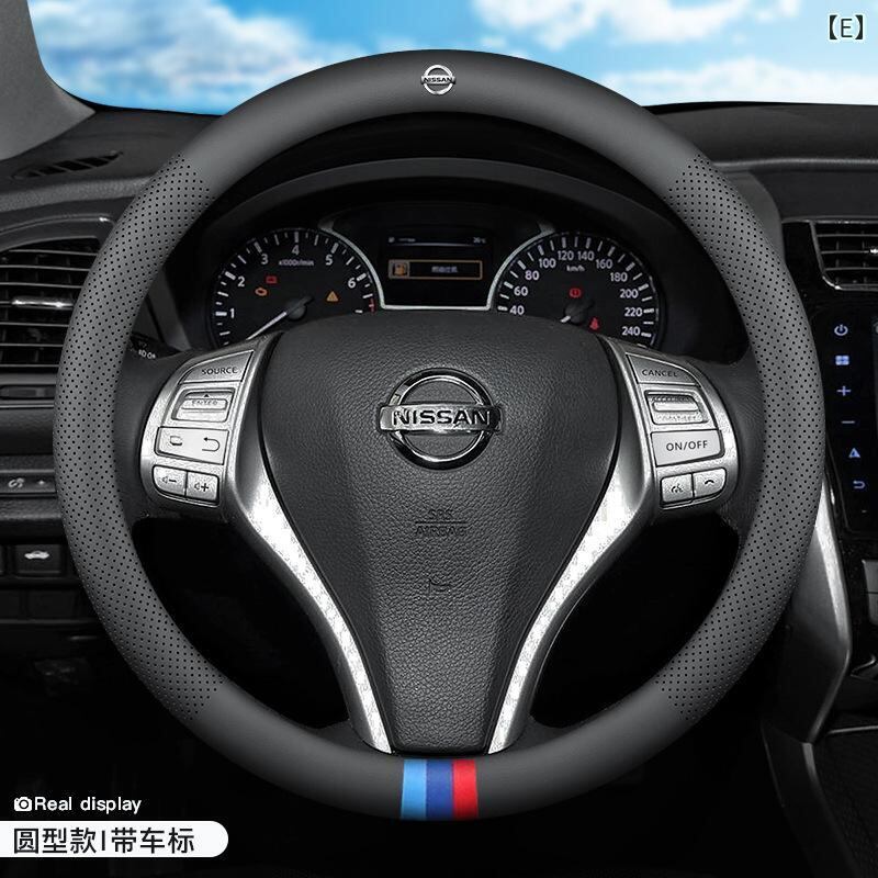ハンドルカバー 日産 14代目 シルフィ ティアナ エクストレイル キャシュカイ ティーダ ブルーバード リヴィー 本革 レザー ステアリングカバー 直径38cm スポーティ 高級感 快適 グリップ保護