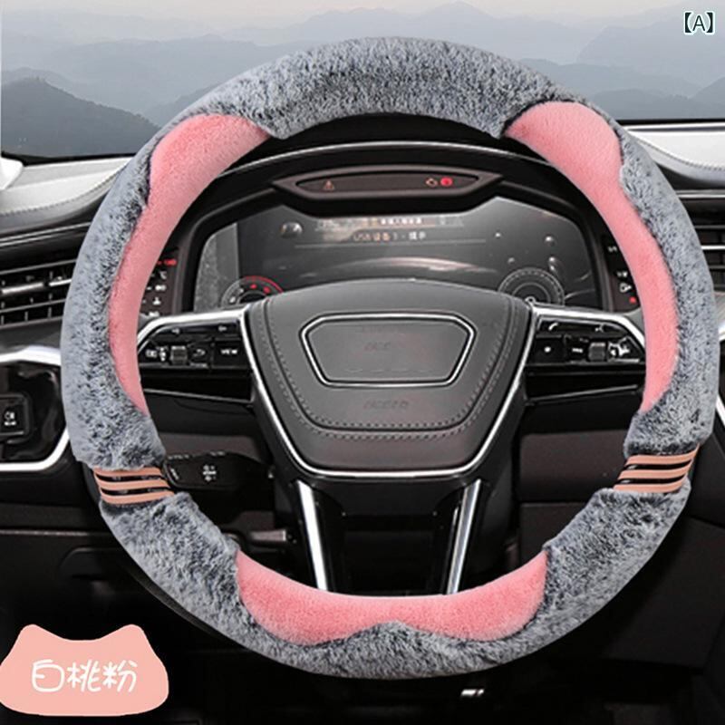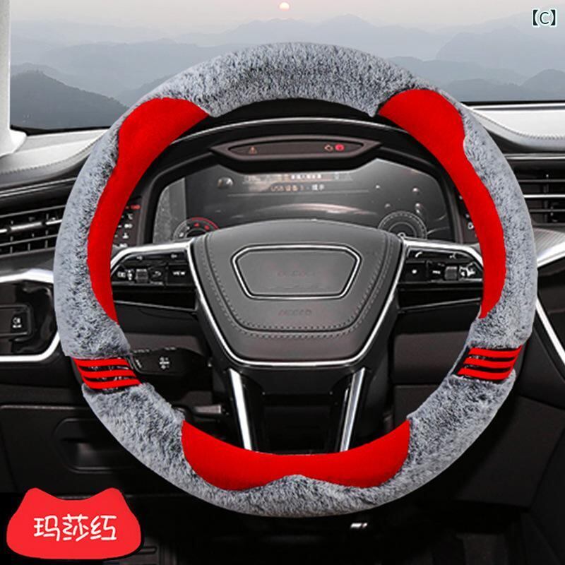 車用品 マツダ ハンドルカバー ステアリングカバー フェイクファー もこもこ かわいい 冬用 防寒 CX5 アクセラ アテンザ CX4 CX30 マツダ6 円形 ピンク ブラック レッド スカイブルー パールホワイト アボカドグリーン | lanui