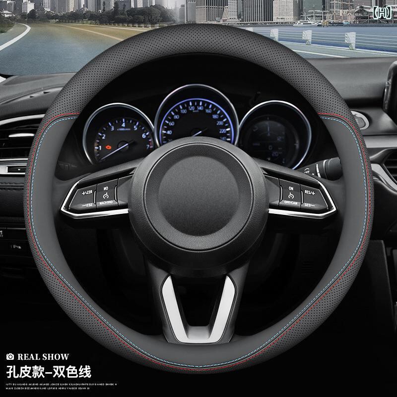 ステアリングカバー ハンドルカバー マツダ CX-5 CX-30 アテンザ アクセラ 車種専用設計 本革 レザー 牛革 超薄型 薄型 スポーツ スポーティー 四季対応 直径38cm 滑り止め 快適 グリップ | lanui