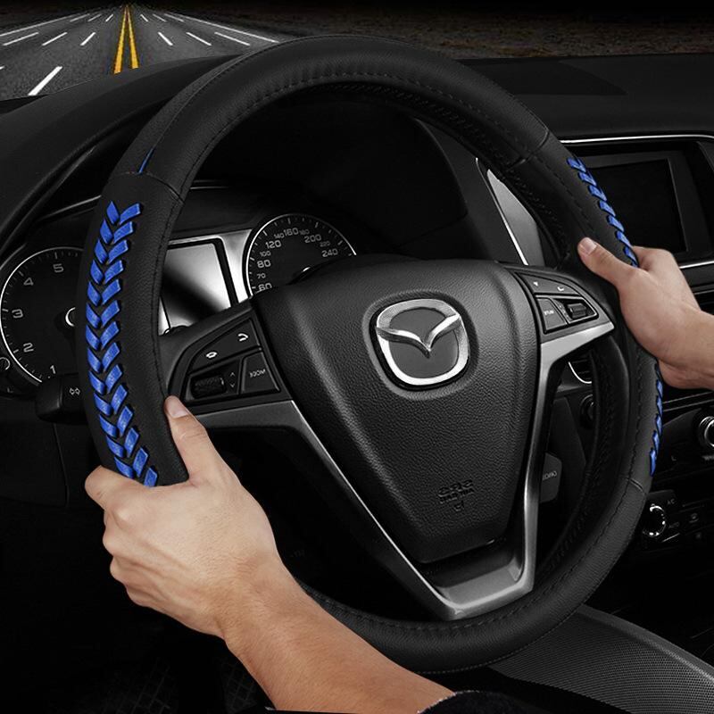 ステアリングカバー マツダ CX-7 CX-5 CX-4 アテンザ マツダ3 ロードスター 本革 天然皮革 レザー ハンドルカバー スポーティ ドレスアップ 内装 保護 滑り止め カーアクセサリー ブラック | lanui