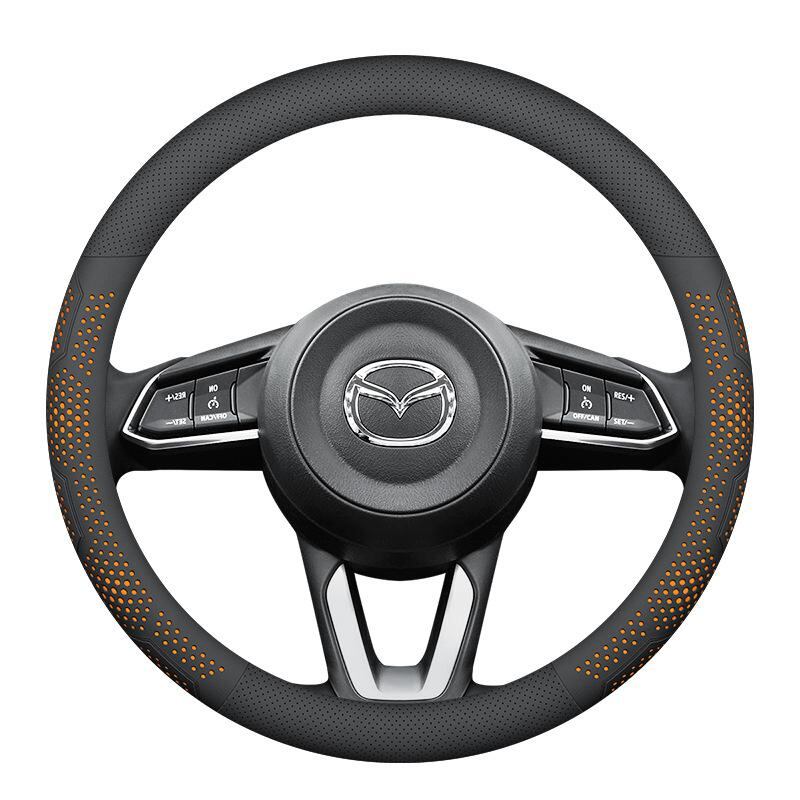 ハンドルカバー マツダ3 アクセラ CX-5 CX-4 CX-8 アテンザ CX-30 CX-50 ルイイー マツダ6 対応 フェイクレザー製 グリップ力 滑り止め 保護 ドレスアップ 円形 | lanui