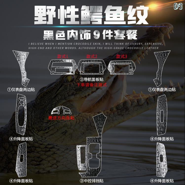 商品特徴・説明文: 愛車の内装をスタイリッシュに演出する、車種専用のクロコダイル柄ステッカーです。