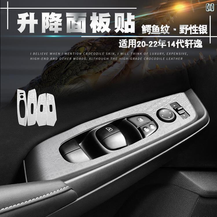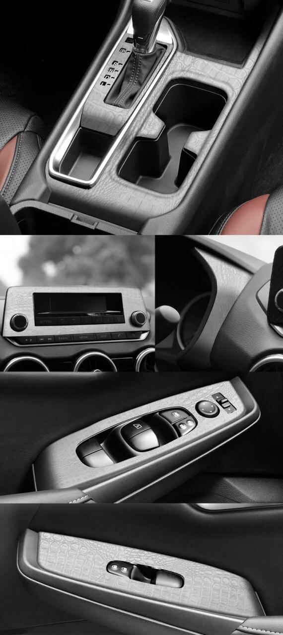 車内装飾ステッカー 日産 シルフィ 14代目 2020-2022年対応 センターコンソール シフトパネル クロコダイル柄 ブラック 内装 カスタム ドレスアップ 保護フィルム