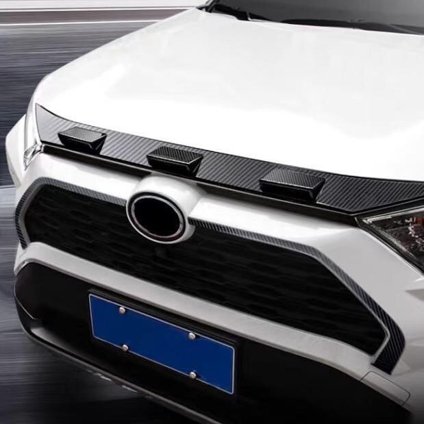 カーパーツ トヨタ RAV4 19系 フロントグリル ガーニッシュ サイドトリム アッパーモール クロームメッキ 光沢ブラック カーボン調 ABS製 ドレスアップ カスタム 外装
