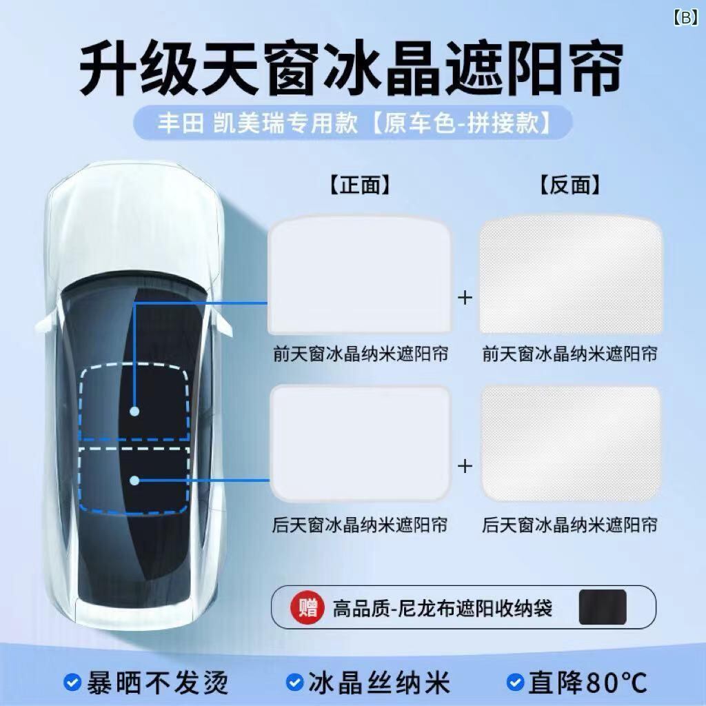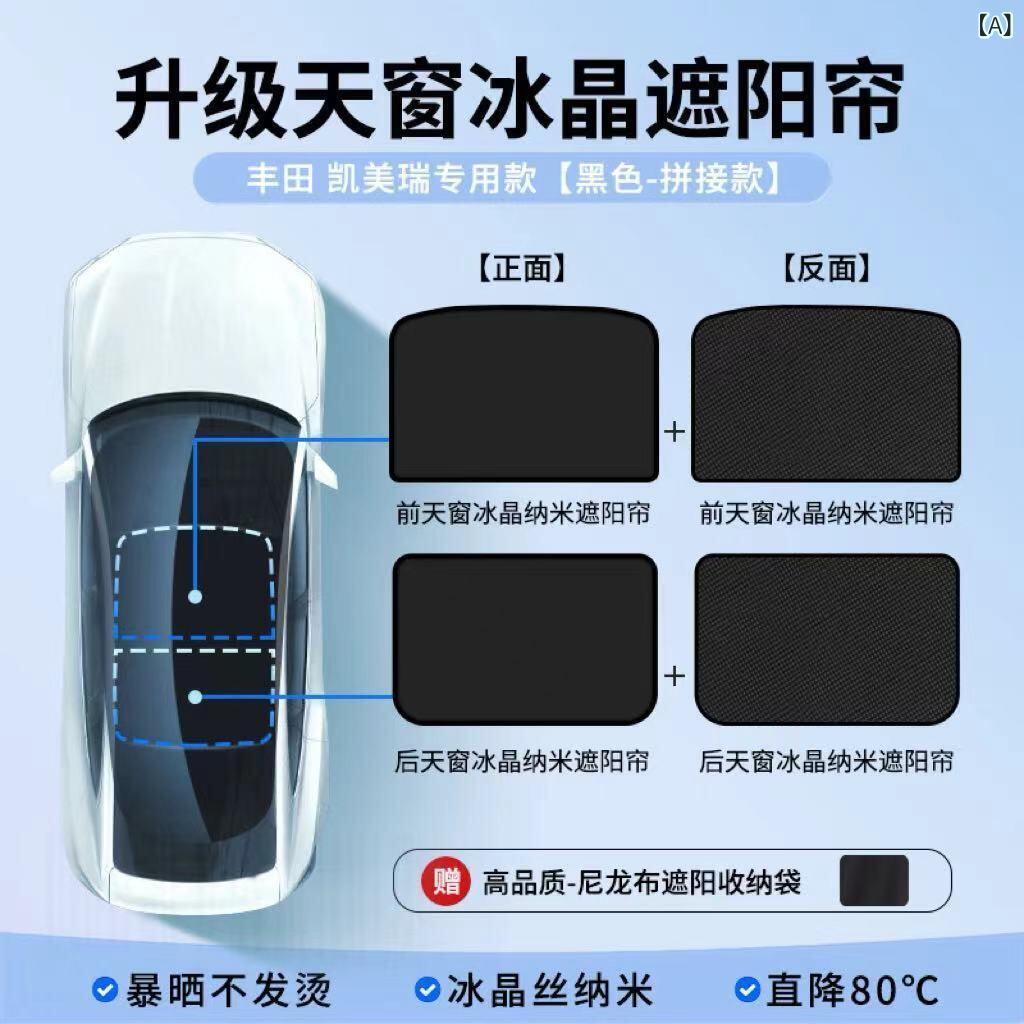 車用サンシェード 新型カムリ パノラマサンルーフ用 静電吸着 日よけ シェード 断熱 遮熱 遮光 UVカット 紫外線対策 車内温度上昇抑制 暑さ対策 メッシュ素材 専用設計 ブラック グレー | lanui