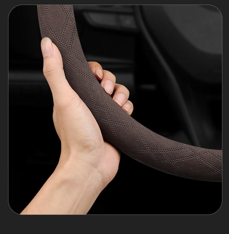 ハンドルをスポーティでおしゃれに彩る、スエード調のステアリングカバーです。