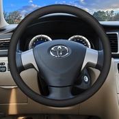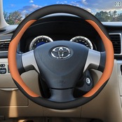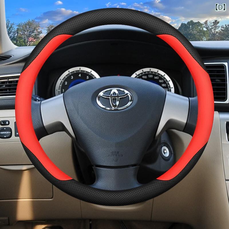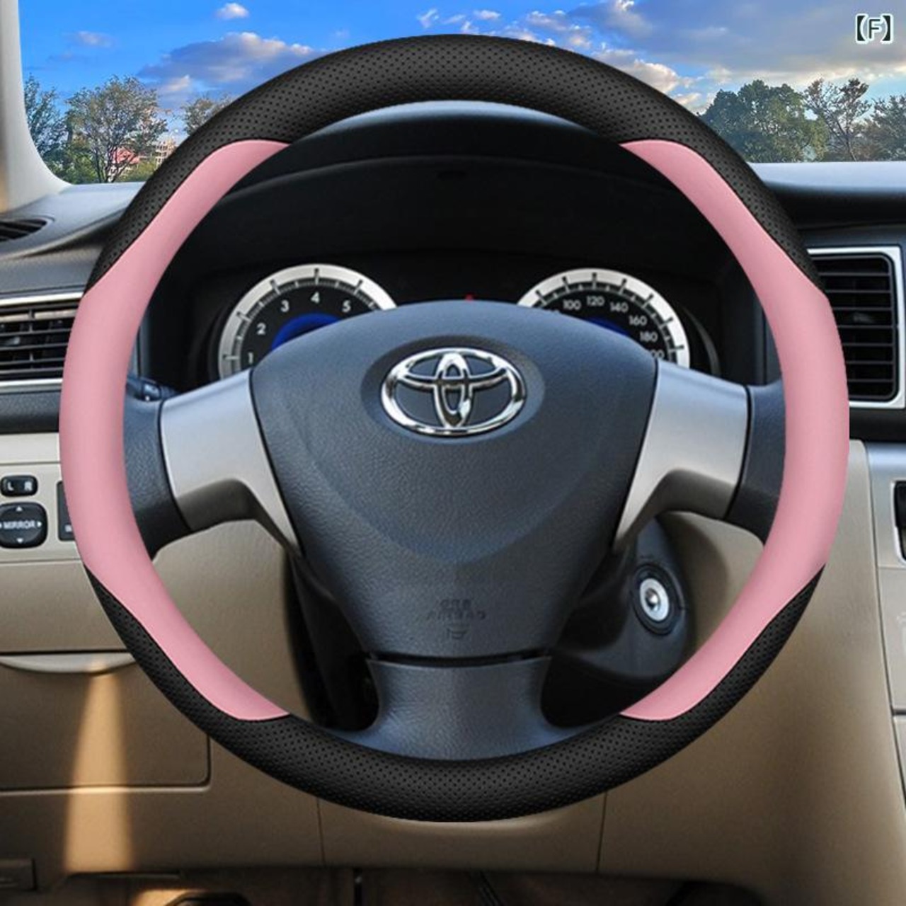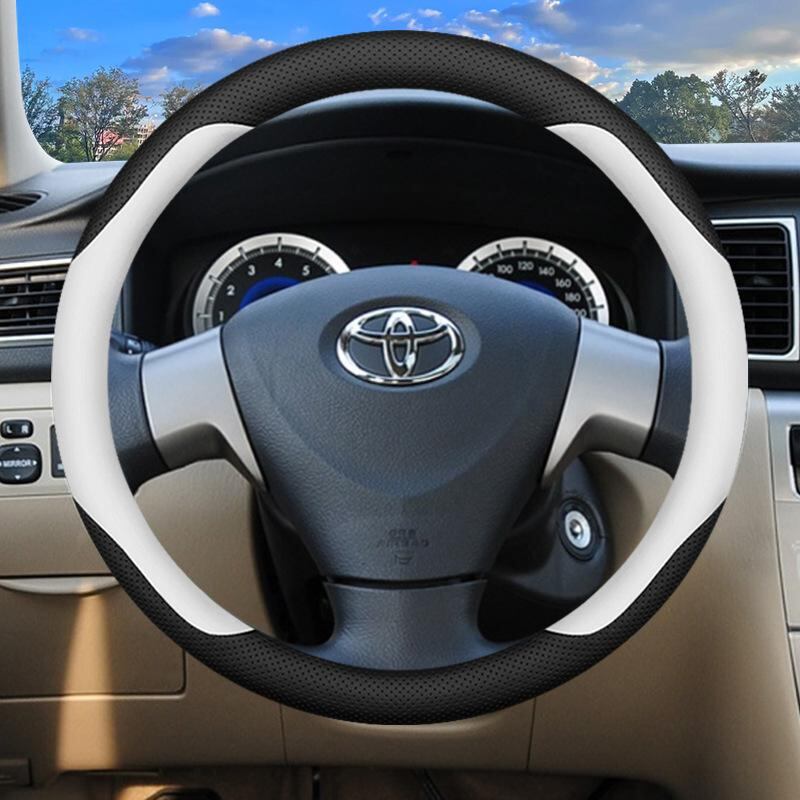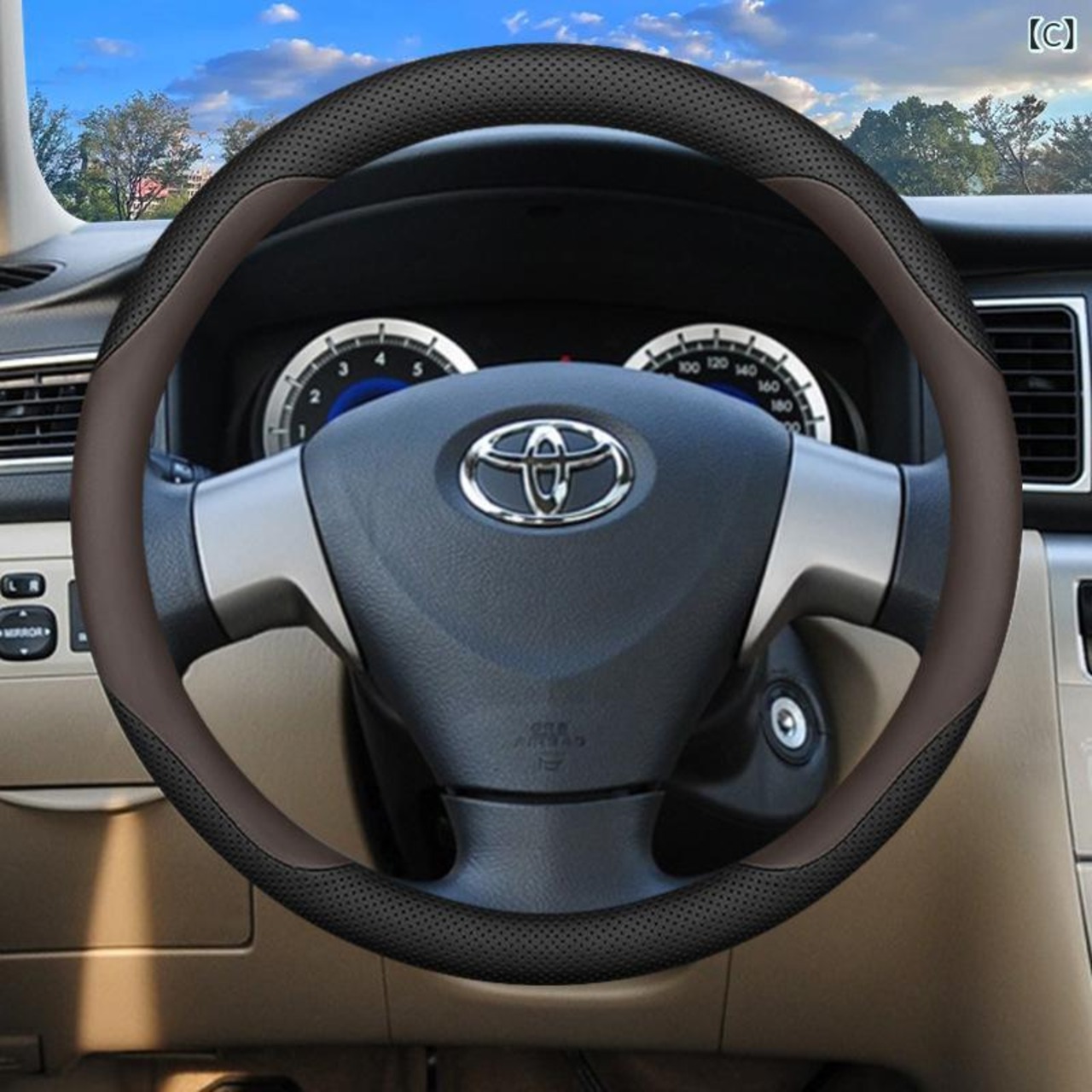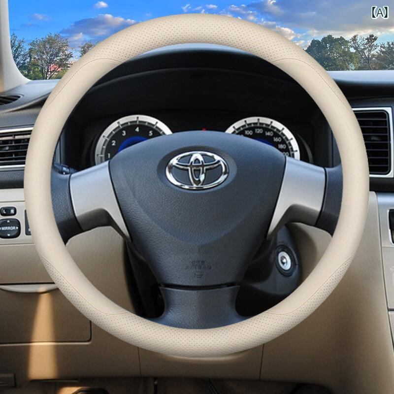 ハンドルカバー トヨタ カローラ カムリ マークX グランビア ハイランダー ヴィオス 専用 本革 レザー 薄型 スリム 円型 四季通用 オールシーズン 38cm ステアリング 車内アクセサリー ドレスアップ ブラック系 アイボリー | lanui
