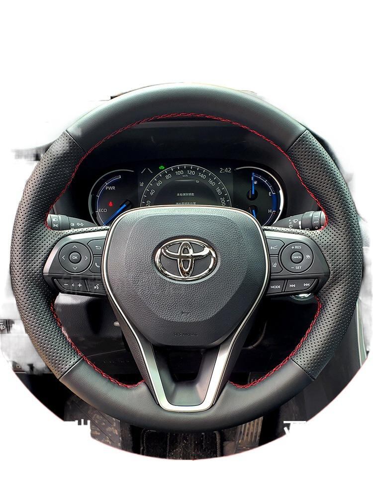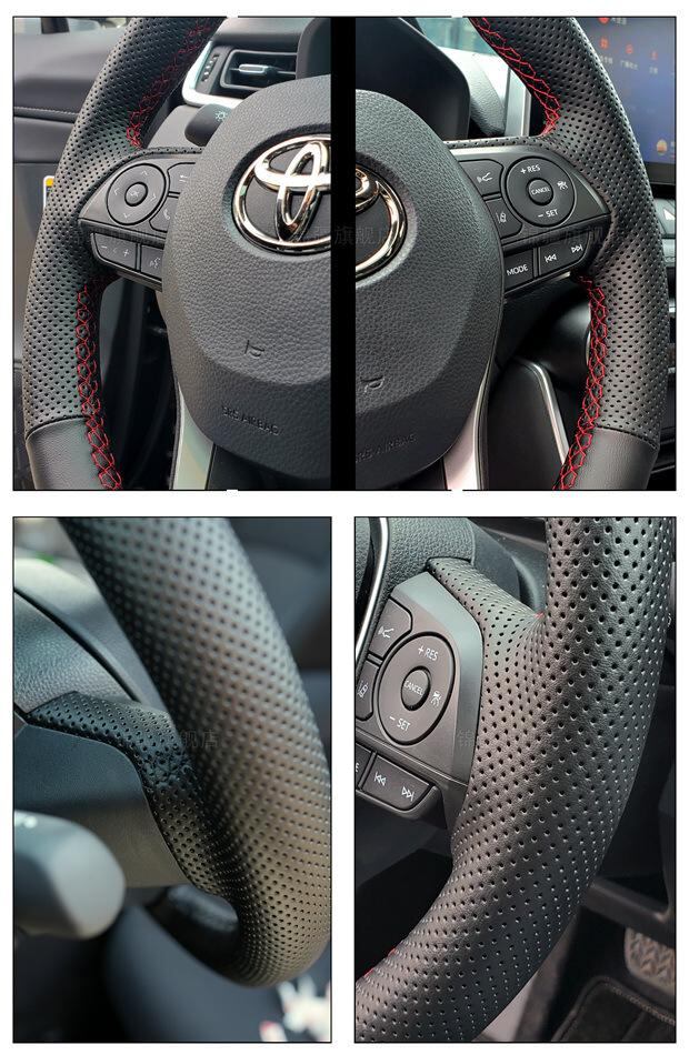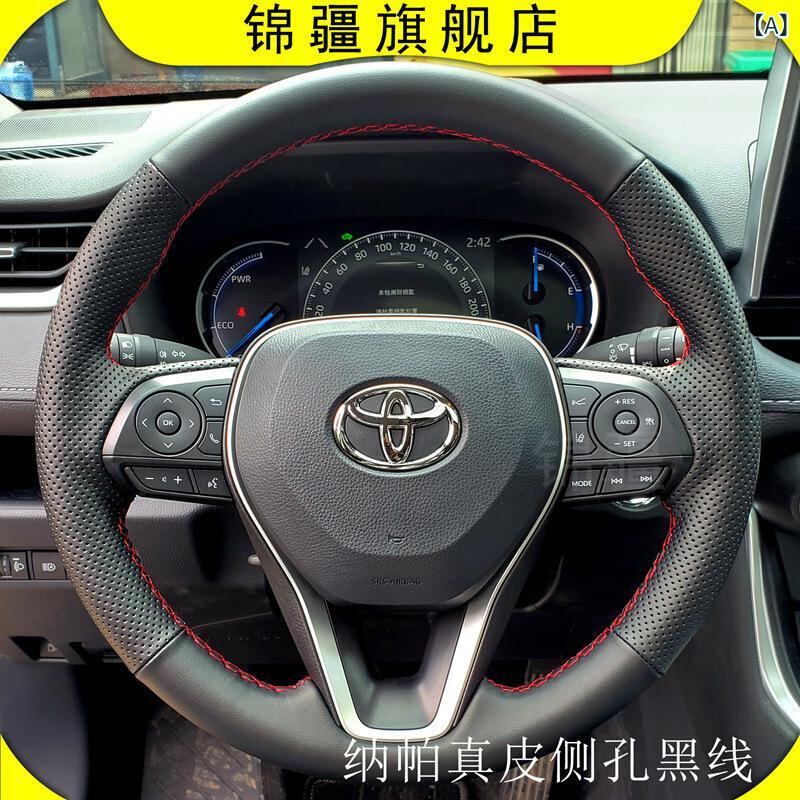 ハンドルカバー トヨタ RAV4 カムリ アバロン ヴェンザ 専用設計 本革 牛革 ナッパレザー ステアリングカバー オールシーズン ブラック 黒ステッチ パンチング フィット 滑り止め 耐久性 | lanui